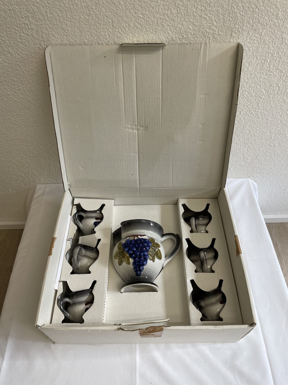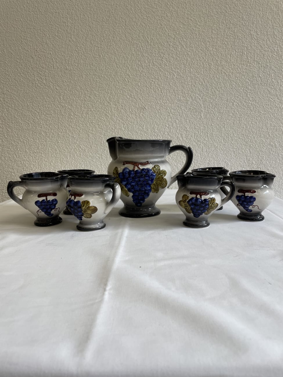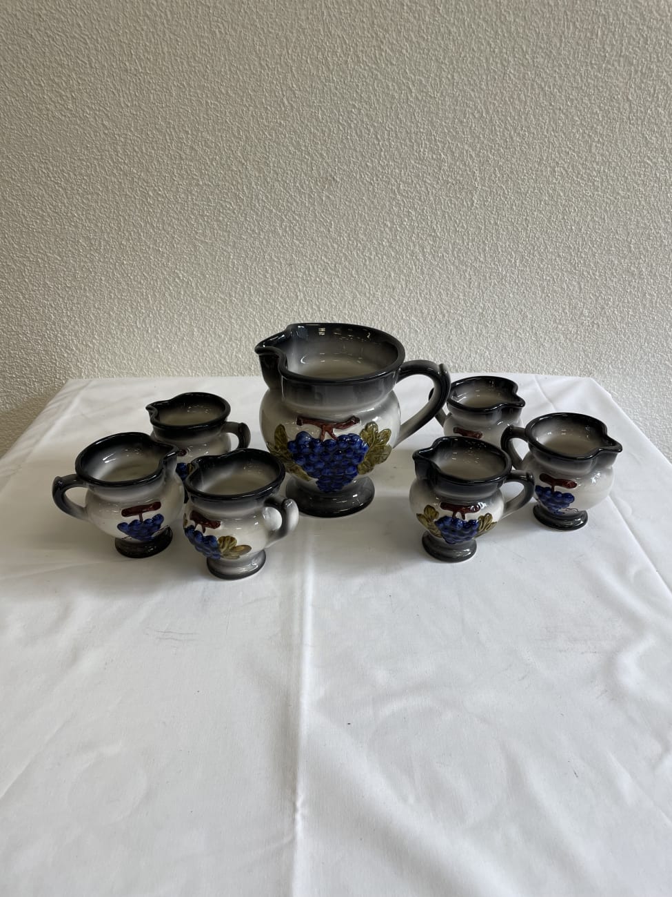Boccalino Keramikset mit Krug und 6 Bechern Traubenmotiv