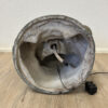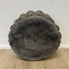Die Oberfläche wirkt wie gealterter Stein in Grau- und Erdtönen. Das Becken ist separat gearbeitet und steht unter der Figur. Pumpe und Kabel sind dabei, der Brunnen ist bereit zum Aufstellen.