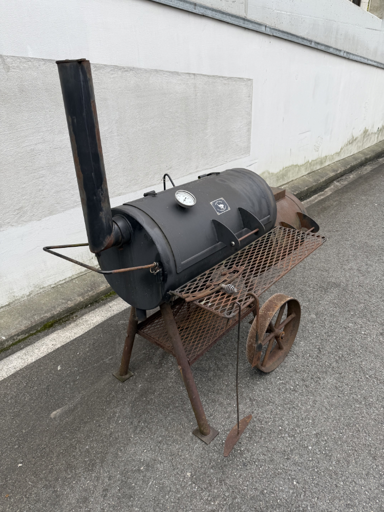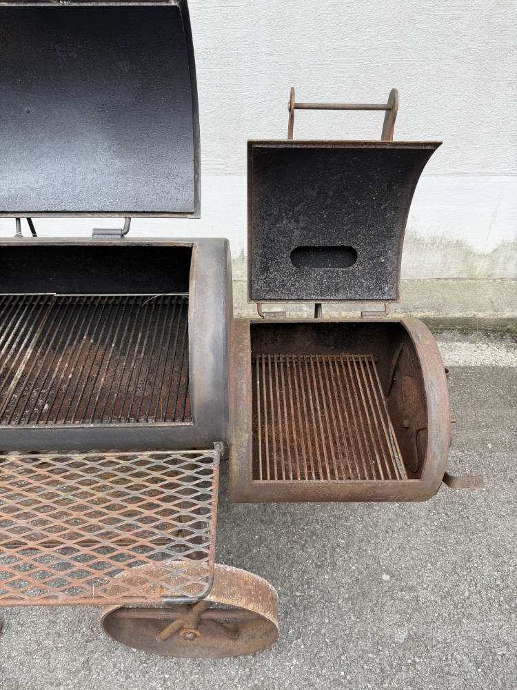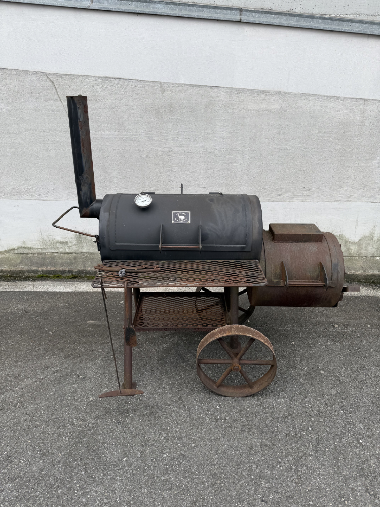 Die sichtbare Rostpatina ist typisch für Smoker. Sie entsteht durch Witterungseinflüsse und den wiederholten Einsatz mit Hitze und Rauch – nicht durch Beschädigung. Der Rost ist oberflächlich und stabil, beeinträchtigt die Funktion in keiner Weise und kann bei Wunsch leicht entfernt oder mit hitzebeständigem Lack neu versiegelt werden. Viele BBQ-Fans schätzen gerade diesen authentischen Used-Look, der dem Smoker seinen unverwechselbaren Charakter verleiht.