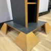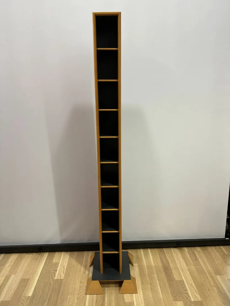 Ein schmales CD-Regal aus Holz befindet sich in einem guten bis sehr guten Zustand. Dieses ansprechende CD-Regal besteht aus Holz an der Innenseite, während die äußere Seite elegant in Schwarz gestrichen ist. Dieser Kontrast zwischen Holz und schwarzer Farbe verleiht dem Regal eine besondere Ausstrahlung. Besonders bemerkenswert ist die speziell gefertigte Halterung. Mit insgesamt 10 großzügigen Fächern bietet es ausreichend Platz für die Aufbewahrung von CDs und Kassetten. Es eignet sich ideal sowohl für das Wohnzimmer als auch für das Büro.