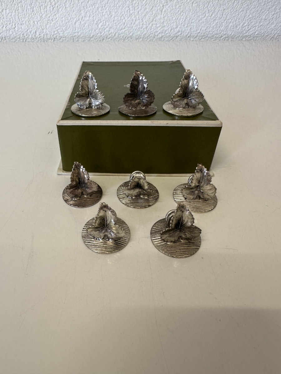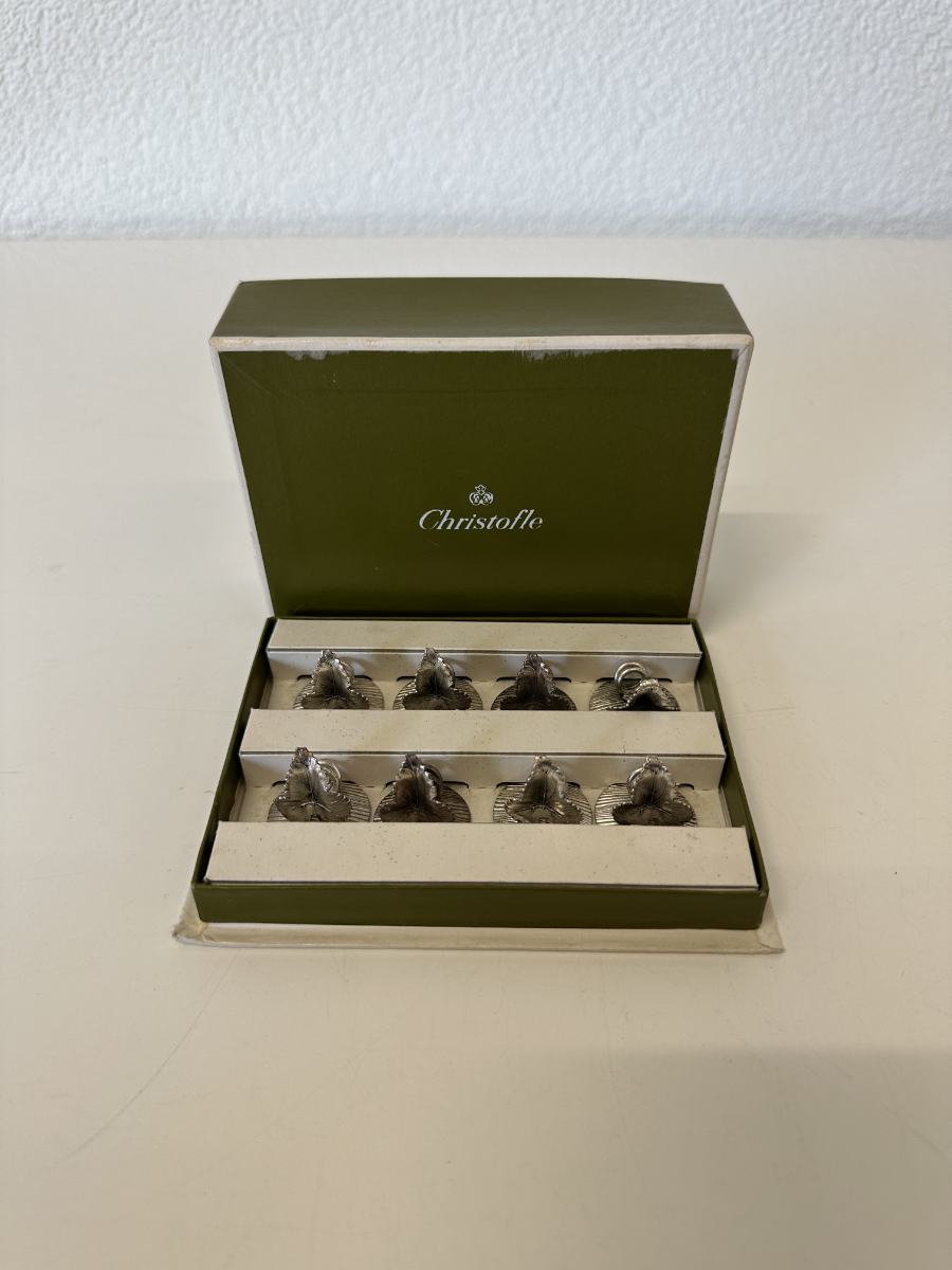Christofle Tischkartenhalter Weinblatt Motiv, 8er Set in Originalbox