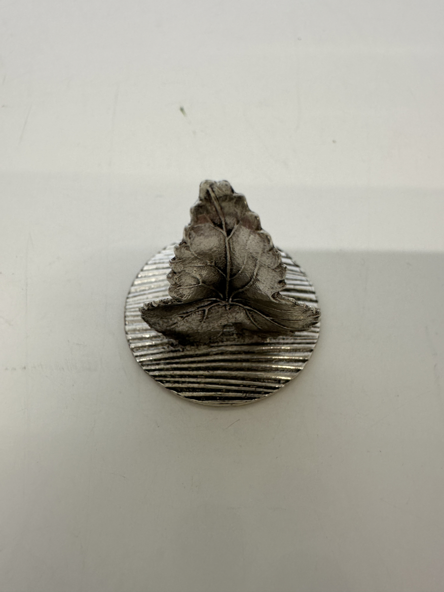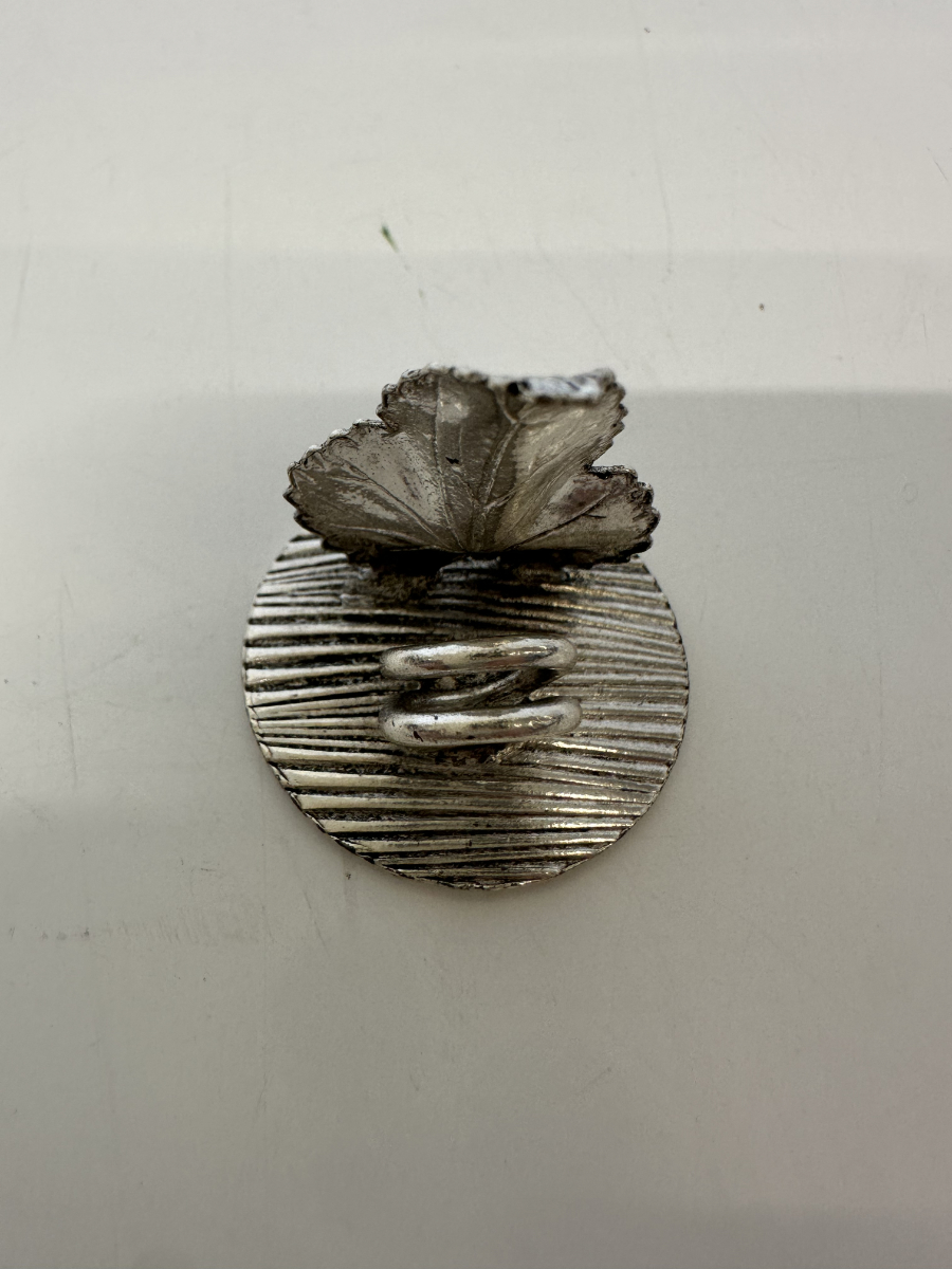 8 elegante Kartenhalter, die eine Tafel sofort hochwertiger wirken lassen. Das Weinblatt Motiv ist plastisch ausgearbeitet und sitzt auf einer runden, fein geriffelten Basis. Auf der Rückseite hält eine Spiralfeder Namenskarten, Menü Kärtchen oder kleine Beschriftungen sicher fest. Die originale Christofle Box ist dabei, perfekt für Aufbewahrung oder als Geschenk.