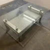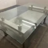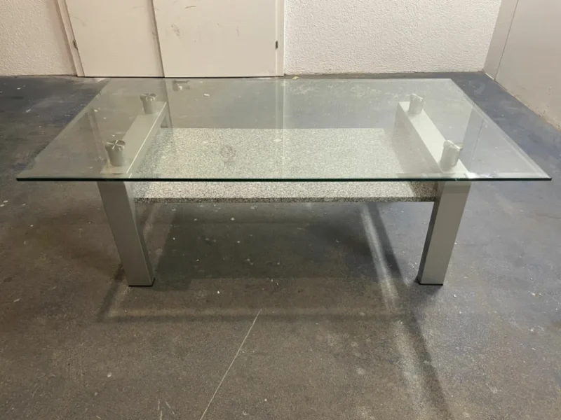 Couchtisch / Beistelltisch mit Granitplatte befindet sich in einem guten bis sehr guten Zustand. Dieser attraktive Tisch besticht durch sein ansprechendes Design, das Gestell ist aus Glas gefertigt und in der Mitte ziert ihn eine robuste Granitplatte. Er eignet sich hervorragend für das Wohnzimmer, sowohl um den Fernseher als auch Zeitschriften darauf zu platzieren. Seine Robustheit und die edle Optik machen ihn zu einem besonderen Möbelstück.