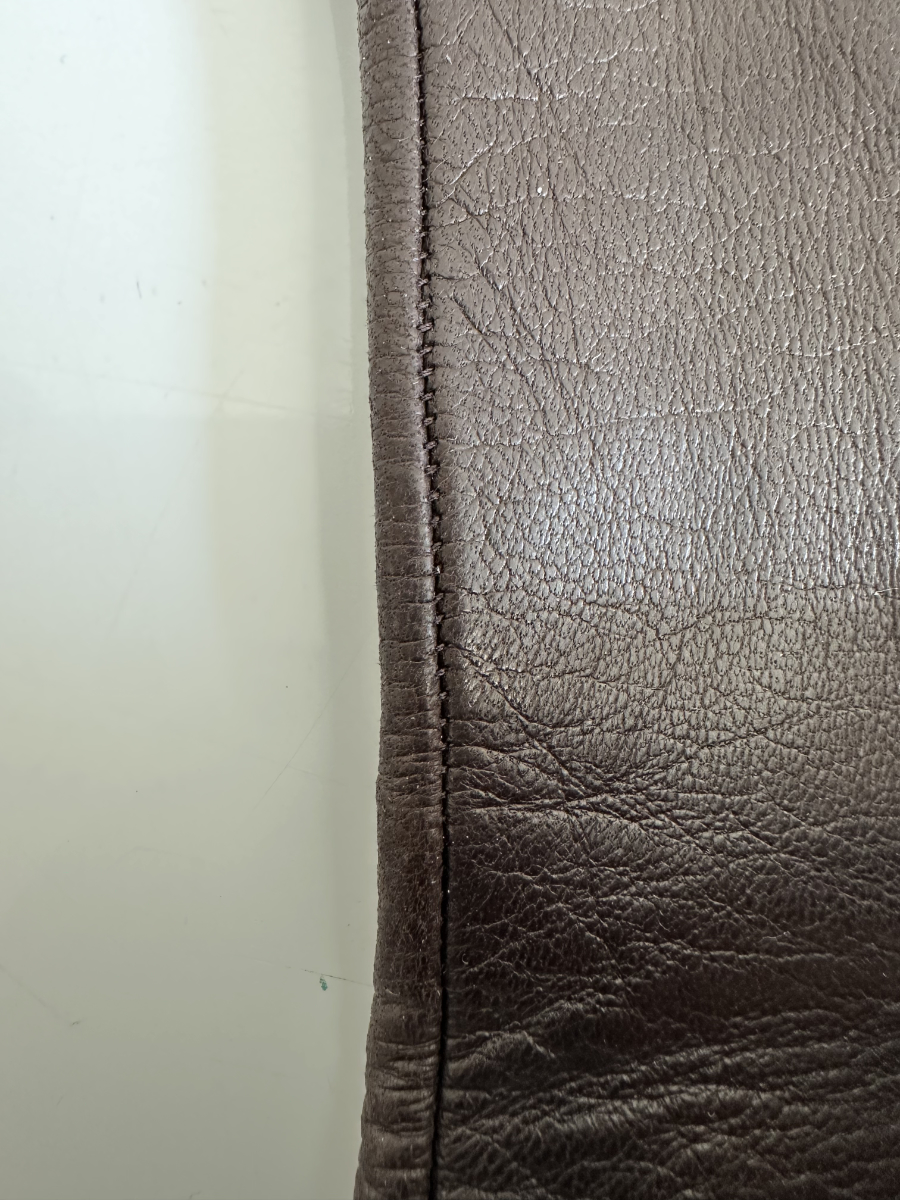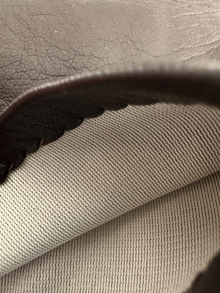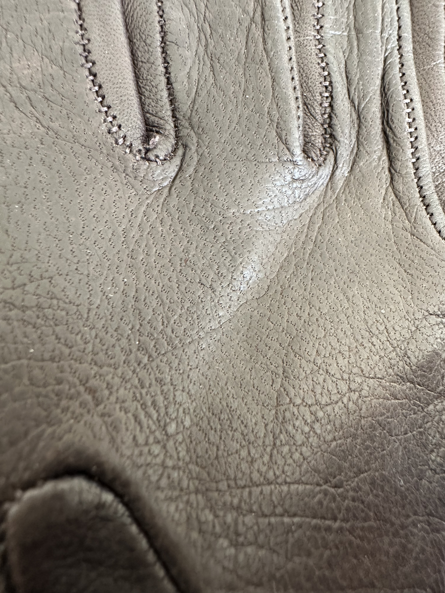 Dunkelbraunes Echtleder mit sichtbarer, natürlicher Narbung und klassischem Schnitt. Die Handschuhe sind angenehm lang gearbeitet und decken das Handgelenk gut ab. Innen befindet sich ein helles Textilfutter, das für zusätzlichen Komfort sorgt und die Handschuhe alltagstauglich für kühlere Tage macht.