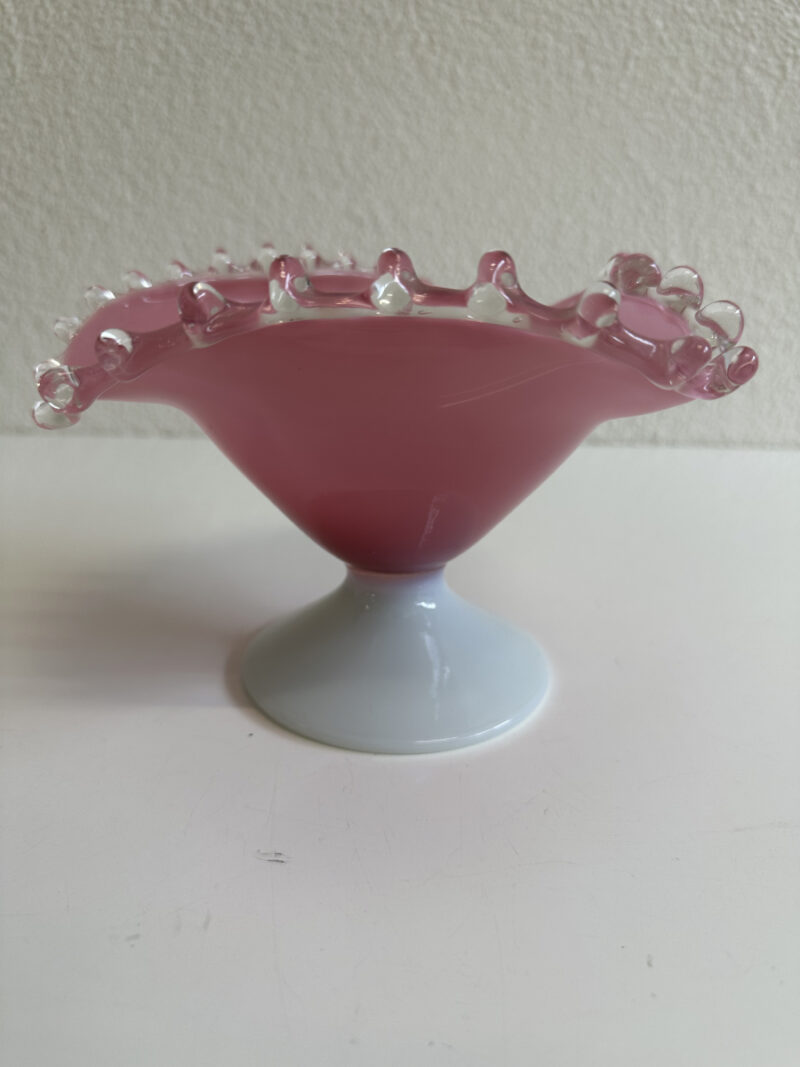 Dekorative Vintage Glas Schale auf Fuss in Rosé