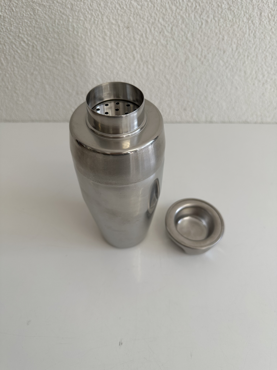 Kühler Edelstahl, sauber verarbeitet und angenehm in der Hand: Dieser Cocktail Shaker von SPRING ist ein solides Bar-Tool für Zuhause. Die Prägung zeigt INOX 18/10, Made in Switzerland sowie die Kennzeichnung 78. Mit dem integrierten Sieb im Aufsatz gelingen Drinks ohne Eisstücke im Glas, der Deckel dient gleichzeitig als Abdeckung und kleines Abmessgefäss.
