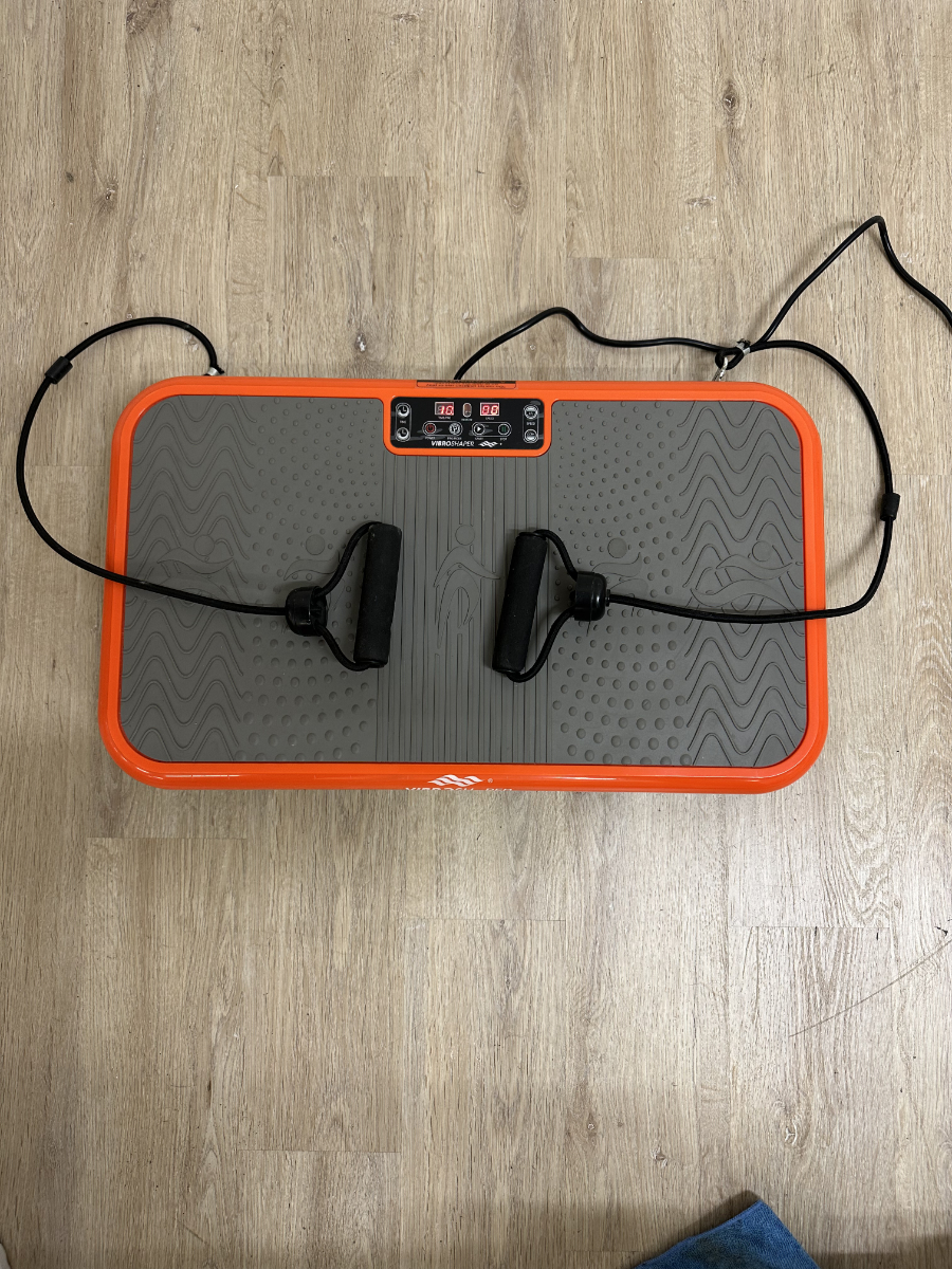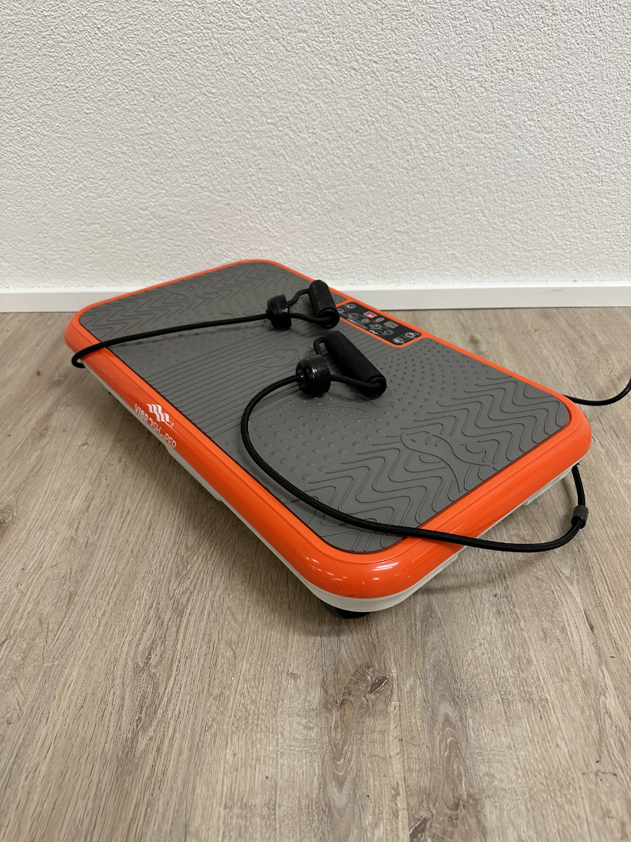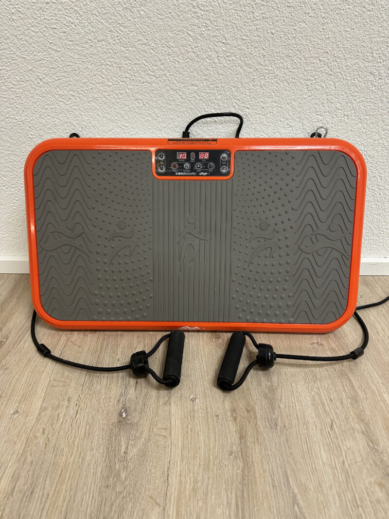Kräftiges Orange trifft auf rutschfeste Trainingsfläche und eine klar strukturierte Bedienung. Diese Vibrationsplatte von VibroShaper wurde für aktives Ganzkörpertraining zu Hause entwickelt. Die strukturierte Standfläche sorgt für sicheren Halt, während die Vibrationen Muskeln gezielt ansprechen können. Über das integrierte Display lassen sich Zeit, Programm und Intensität einfach einstellen. Die mitgelieferten Trainingsseile erweitern die Übungsmöglichkeiten für Arme, Schultern und Oberkörper. Kompakt gebaut, schnell einsatzbereit und leicht zu verstauen.