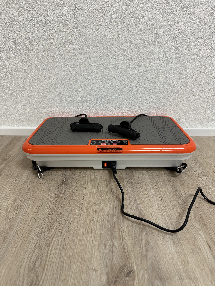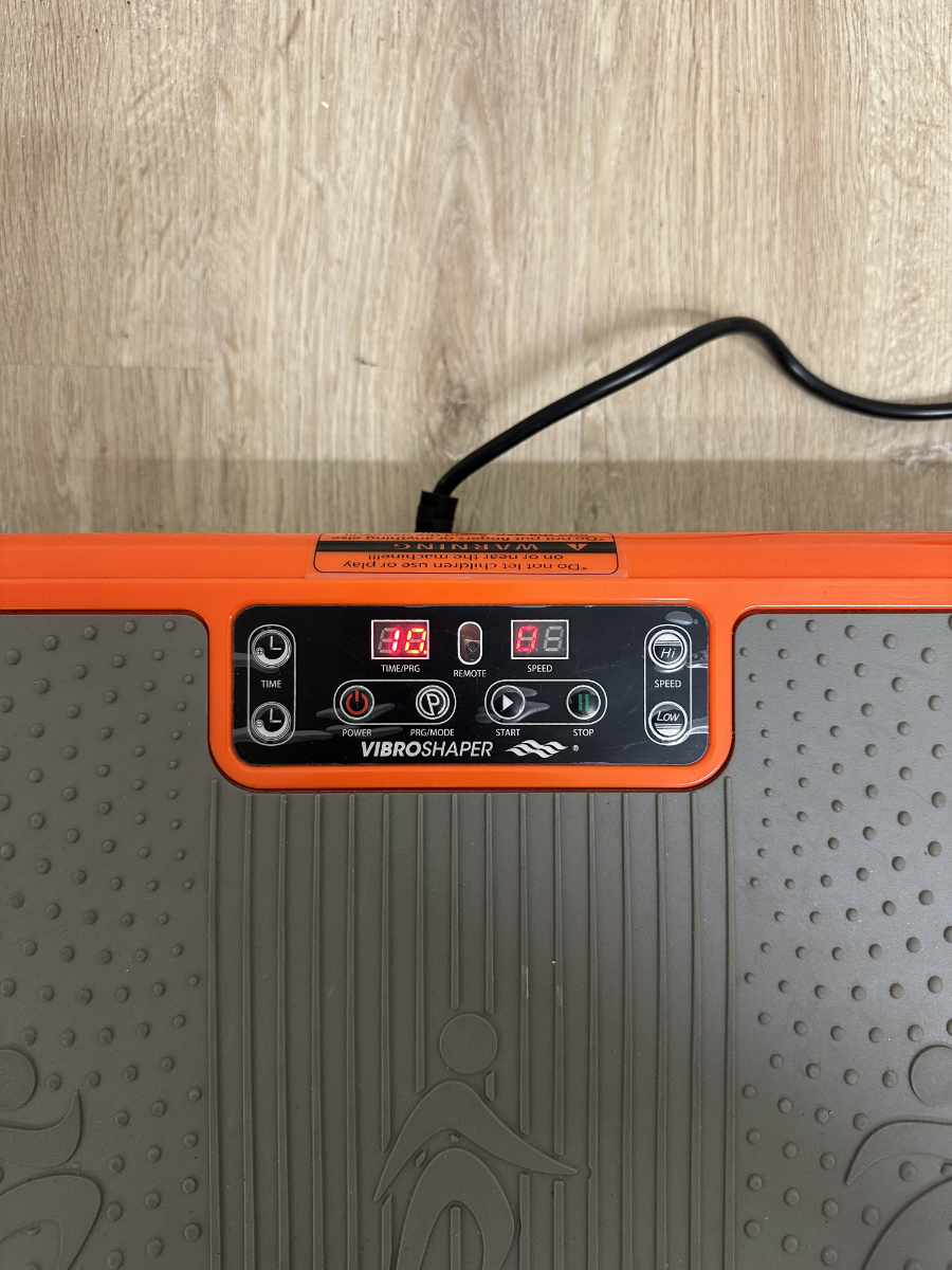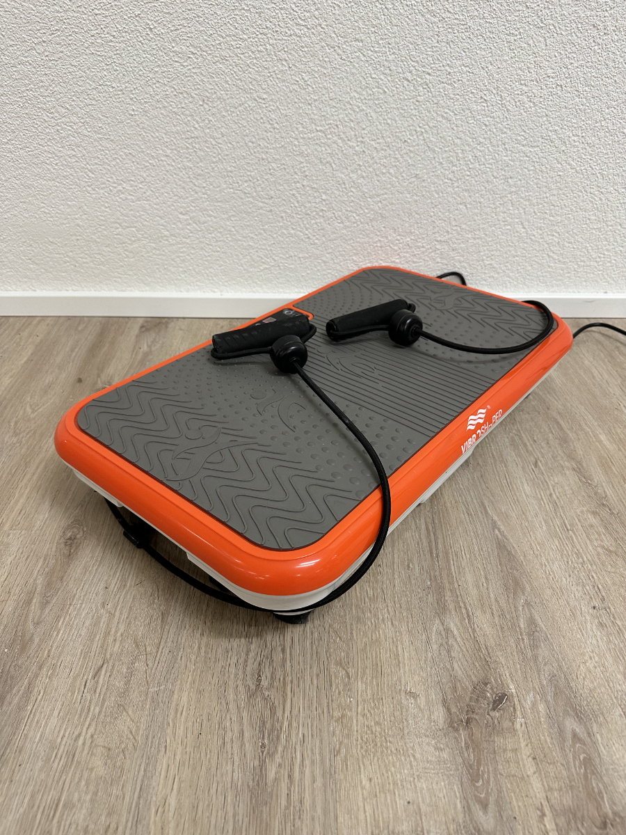 Kräftiges Orange trifft auf rutschfeste Trainingsfläche und eine klar strukturierte Bedienung. Diese Vibrationsplatte von VibroShaper wurde für aktives Ganzkörpertraining zu Hause entwickelt. Die strukturierte Standfläche sorgt für sicheren Halt, während die Vibrationen Muskeln gezielt ansprechen können. Über das integrierte Display lassen sich Zeit, Programm und Intensität einfach einstellen. Die mitgelieferten Trainingsseile erweitern die Übungsmöglichkeiten für Arme, Schultern und Oberkörper. Kompakt gebaut, schnell einsatzbereit und leicht zu verstauen.