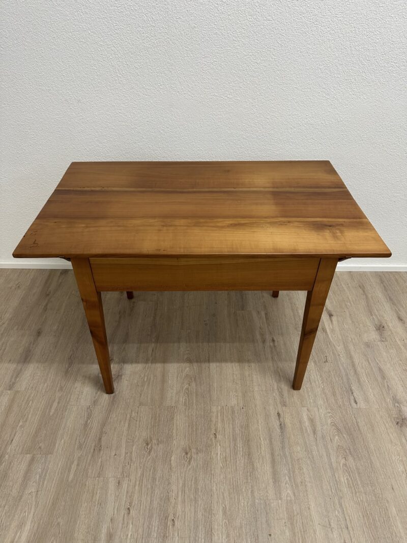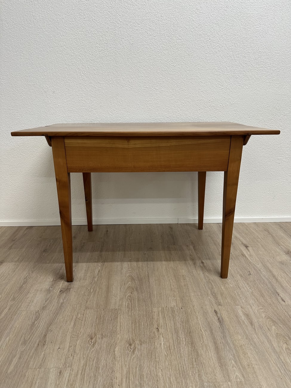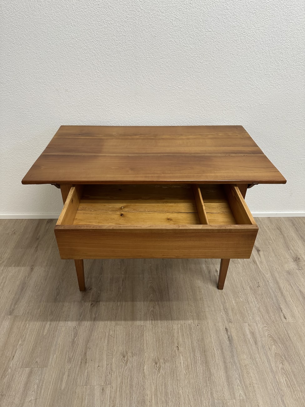 Massives Holz mit sichtbaren Ästen und warmer Farbgebung macht diesen Tisch sofort wohnlich. Die Oberfläche zeigt die typische Kieferstruktur mit lebendiger Maserung und natürlichen Unregelmässigkeiten. Praktisch ist die integrierte Schublade mit Unterteilung, ideal für Besteck oder kleine Dinge im Alltag. Die klare, stabile Bauweise passt gut in Küchen oder Essbereiche, wo es unkompliziert und gemütlich sein darf.