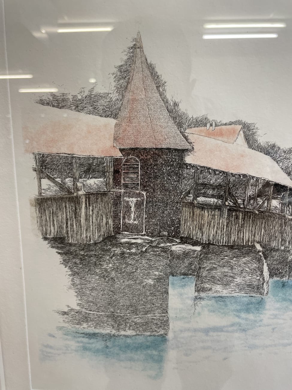 Farbradierung „Spreuerbrücke Luzern“ von Walter Dick, 1988