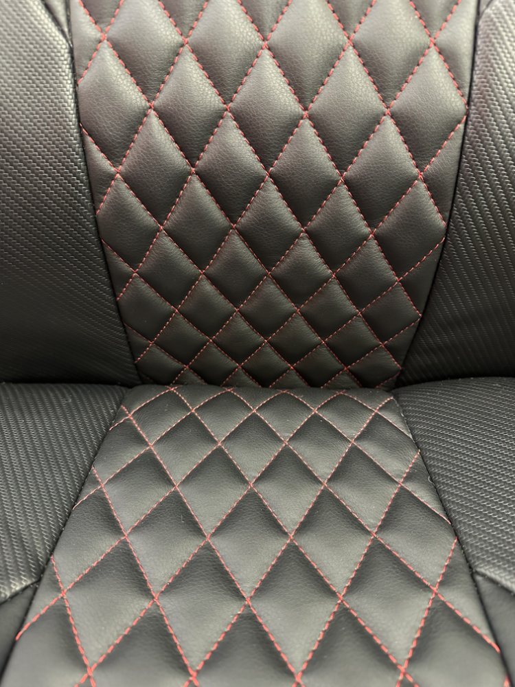 ✅ Schwarzer Kunstlederbezug mit roten Ziernähten