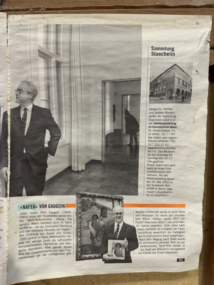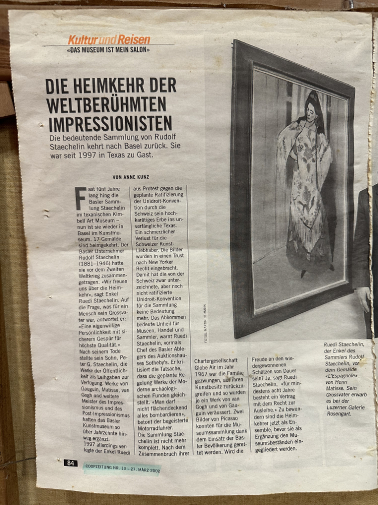 ✅ Rückseitig mit historischem Zeitungsausschnitt zur Sammlung Staechelin
