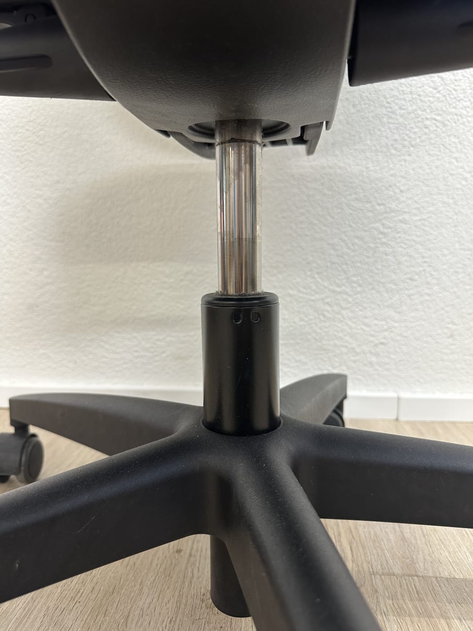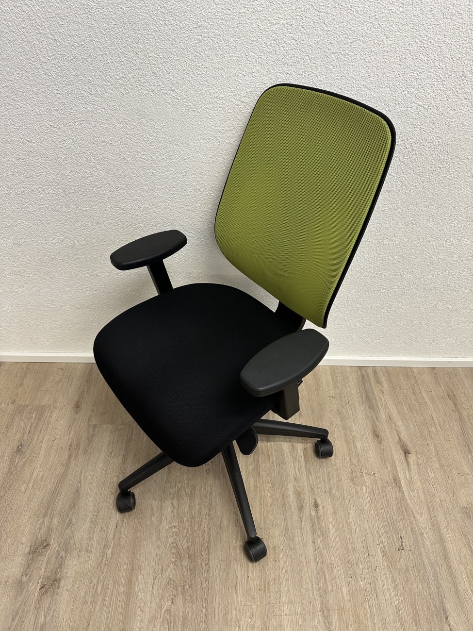 Grüne Rückenlehne mit feiner Struktur, kombiniert mit schwarzem Sitzpolster. Wirkt frisch, ohne aufdringlich zu sein. Giroflex gehört zu den bekannten Schweizer Herstellern im Bürobereich, entsprechend solide gebaut. Sitzhöhe verstellbar, Rückenlehne angenehm flexibel, Rollen laufen ruhig. Ein Stuhl, der im Alltag einfach funktioniert.