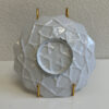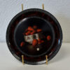 Der leicht gewellte Rand ist mit dunkelblauen Feldern und feiner Linienmalerei versehen und fasst das Motiv harmonisch ein. Auf der Rückseite befindet sich eine stabile Metallaufhängung, sodass der Teller sowohl an der Wand präsentiert als auch auf einem Möbel oder in einem Regal aufgestellt werden kann.
