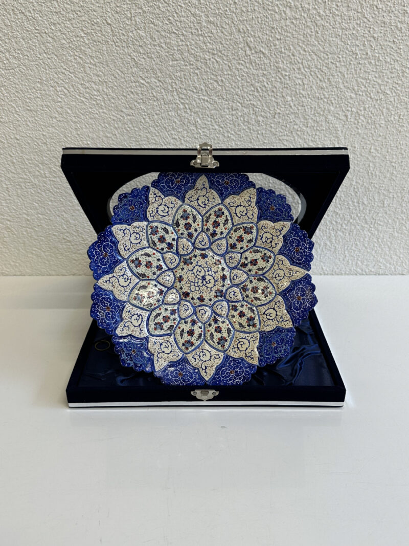 Handbemalter persischer Zierteller aus Emaille mit Originalbox von Isfahan