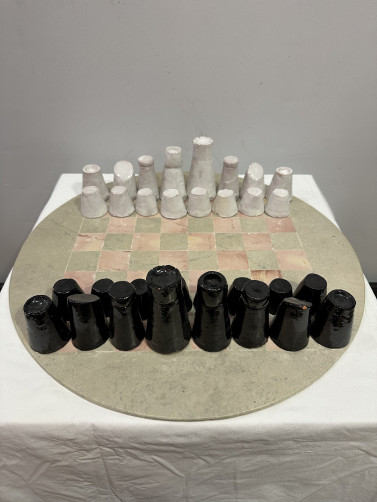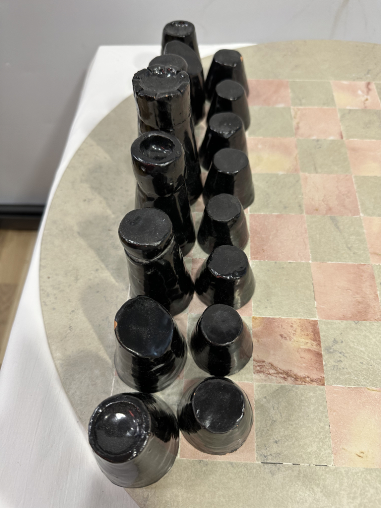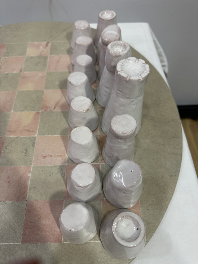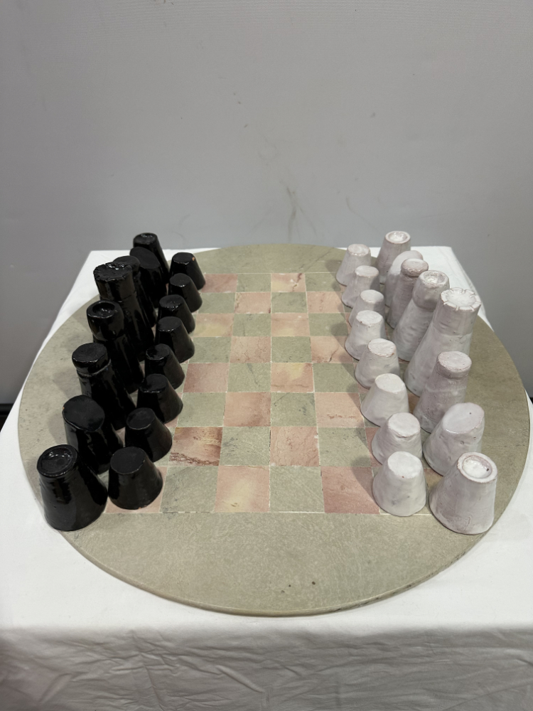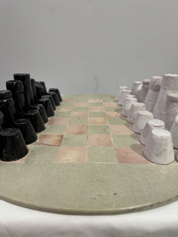 Handgefertigtes Schachspiel aus Keramik und Naturstein