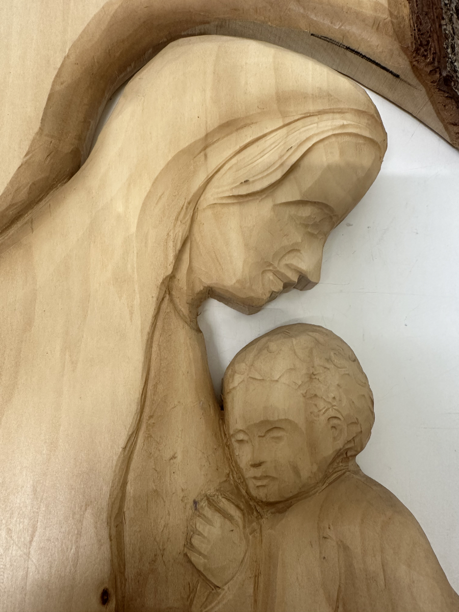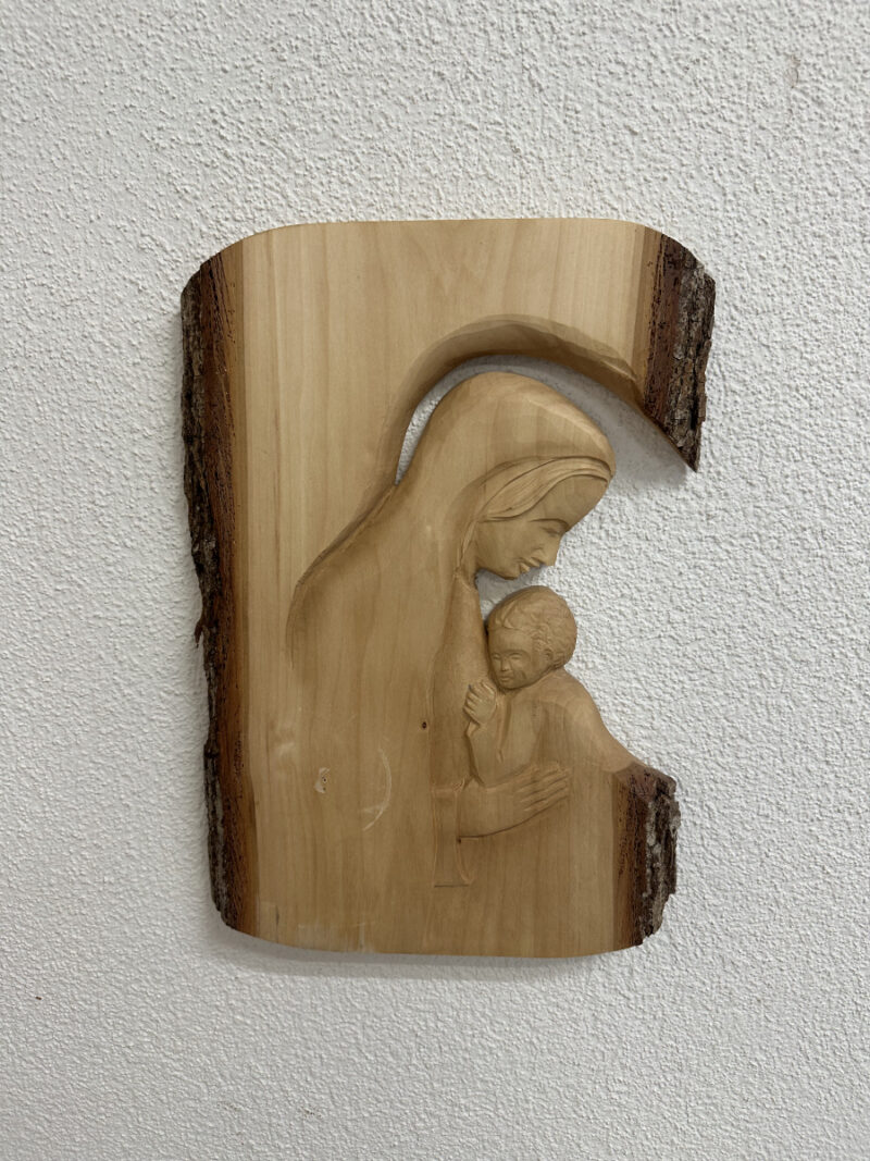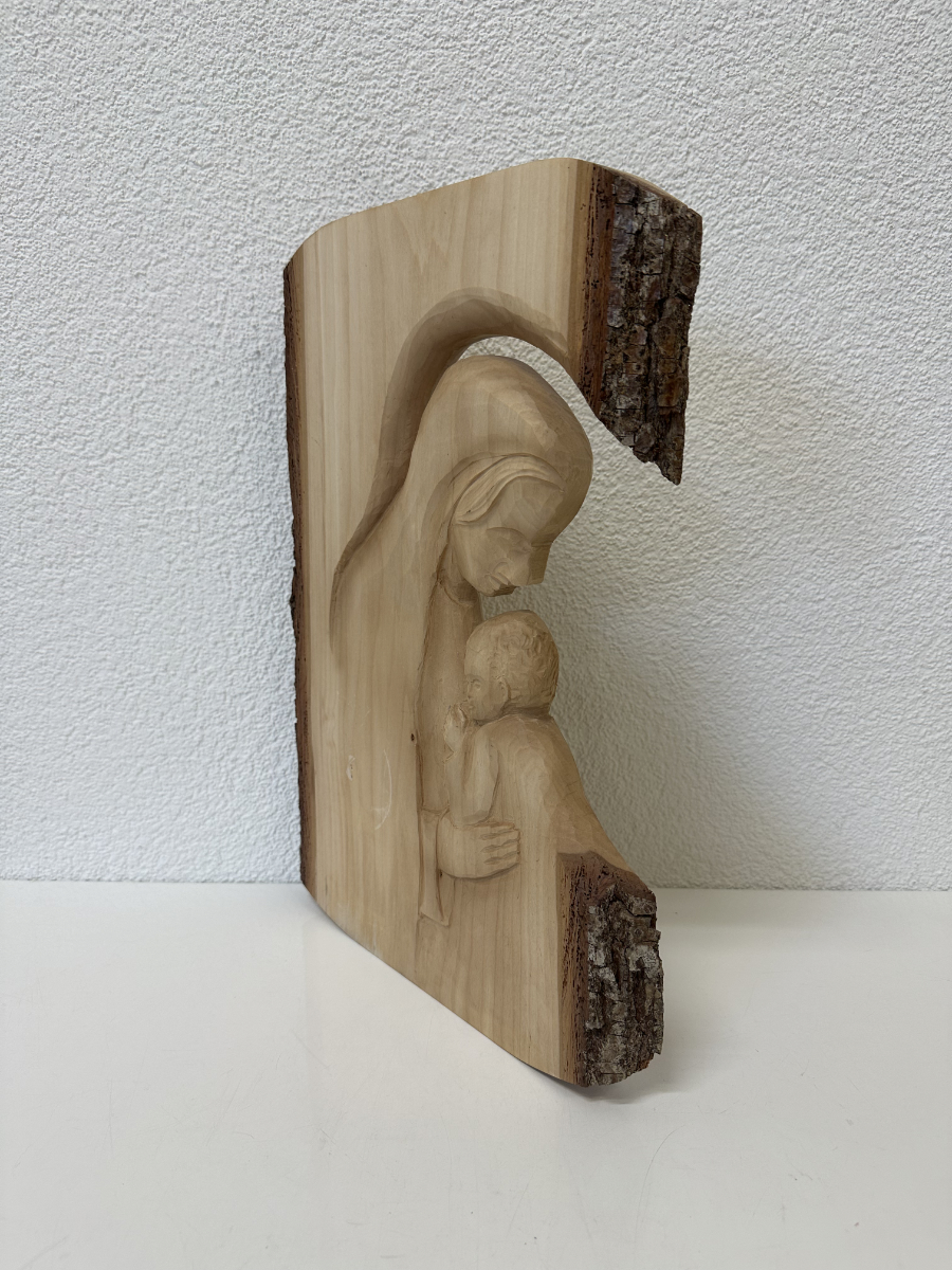 Handgeschnitztes Holzrelief Madonna mit Kind – Wandrelief aus massivem Holz