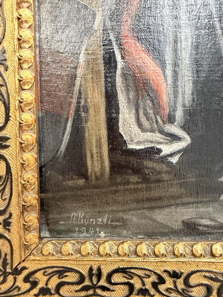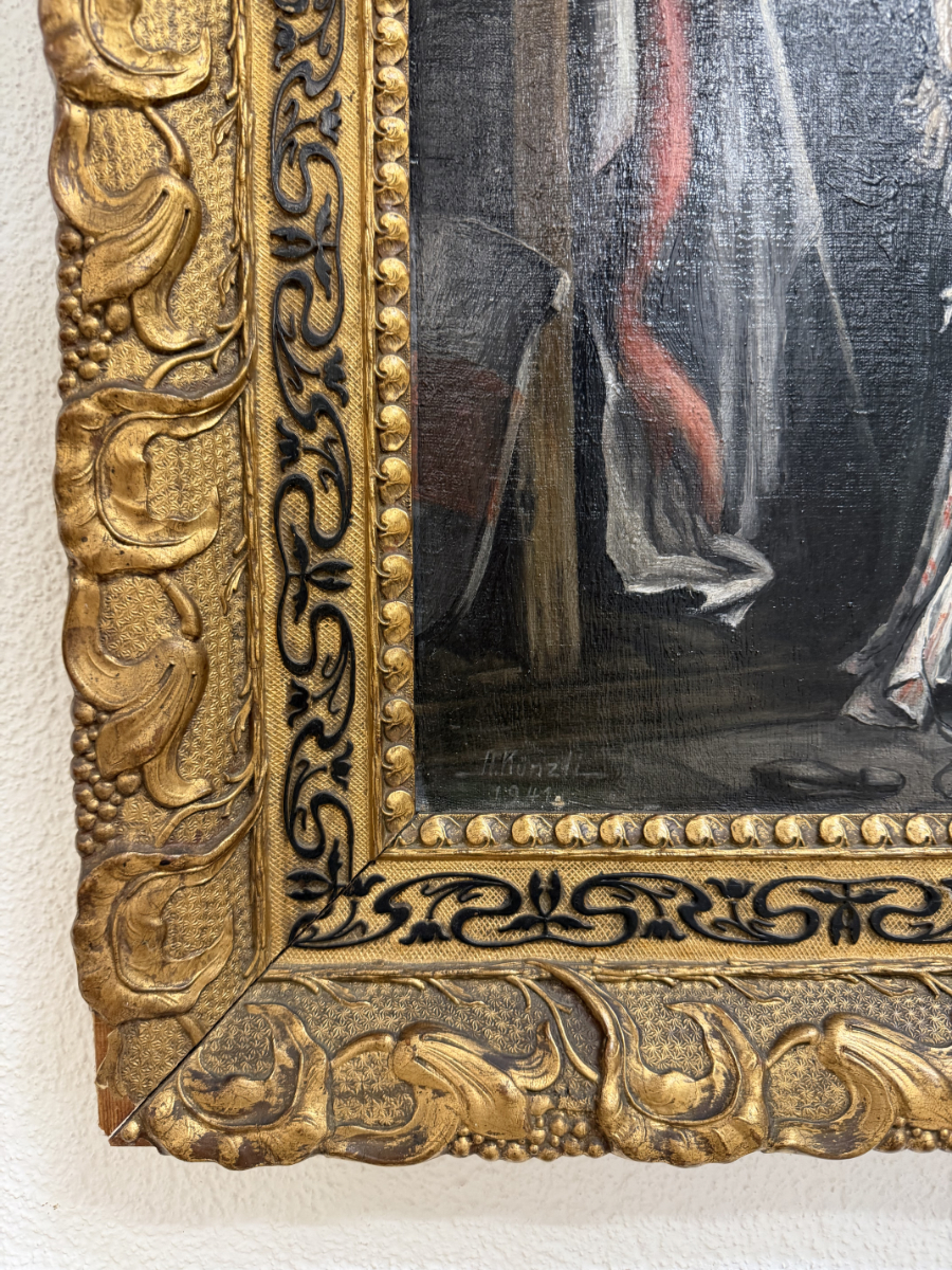 Historisches Öl-Gemälde 1944 signiert A. Künzli, allegorische Figurenszene