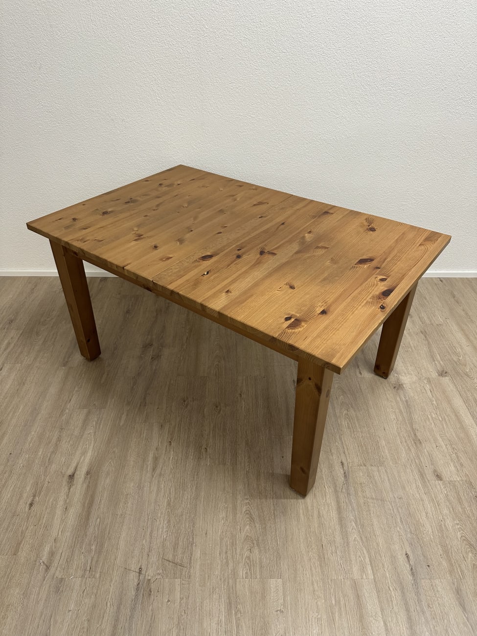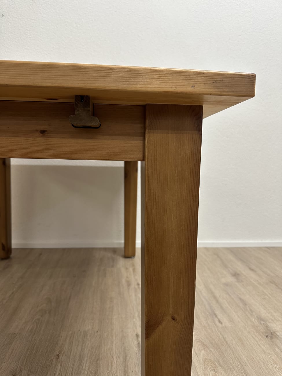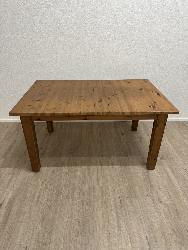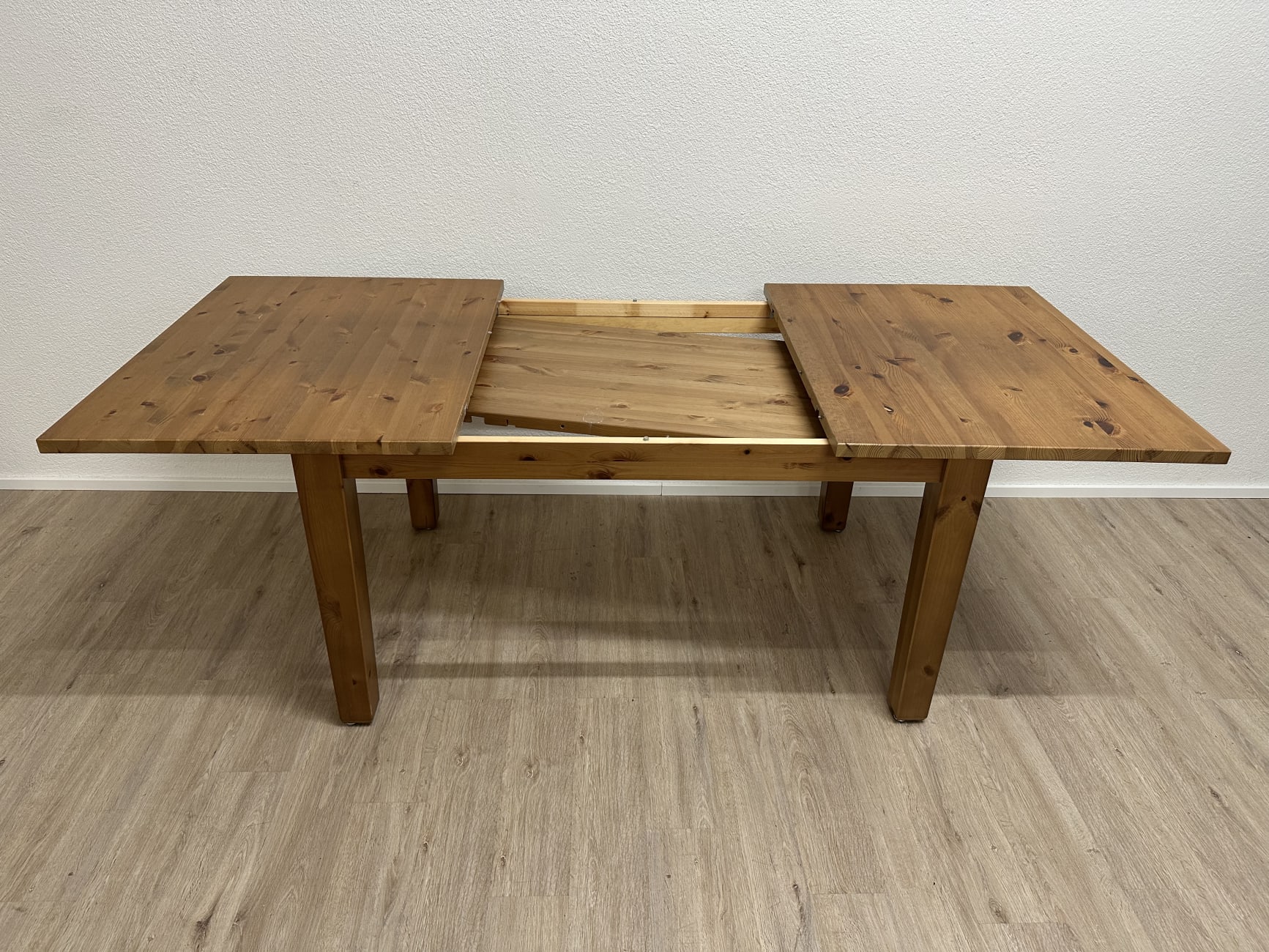 Massive Kiefer mit sichtbarer Maserung und warmem Farbton bringt sofort eine wohnliche Stimmung in den Raum. STORNÄS gehört zu den robusteren IKEA-Modellen und ist bekannt für seine stabile Bauweise und einfache Erweiterung. Die Tischplatte lässt sich beidseitig auseinanderziehen, die Einlegeplatte wird mittig eingesetzt. So entsteht im Handumdrehen mehr Platz für Gäste. Praktisch im Alltag und zuverlässig, wenn es voll wird.