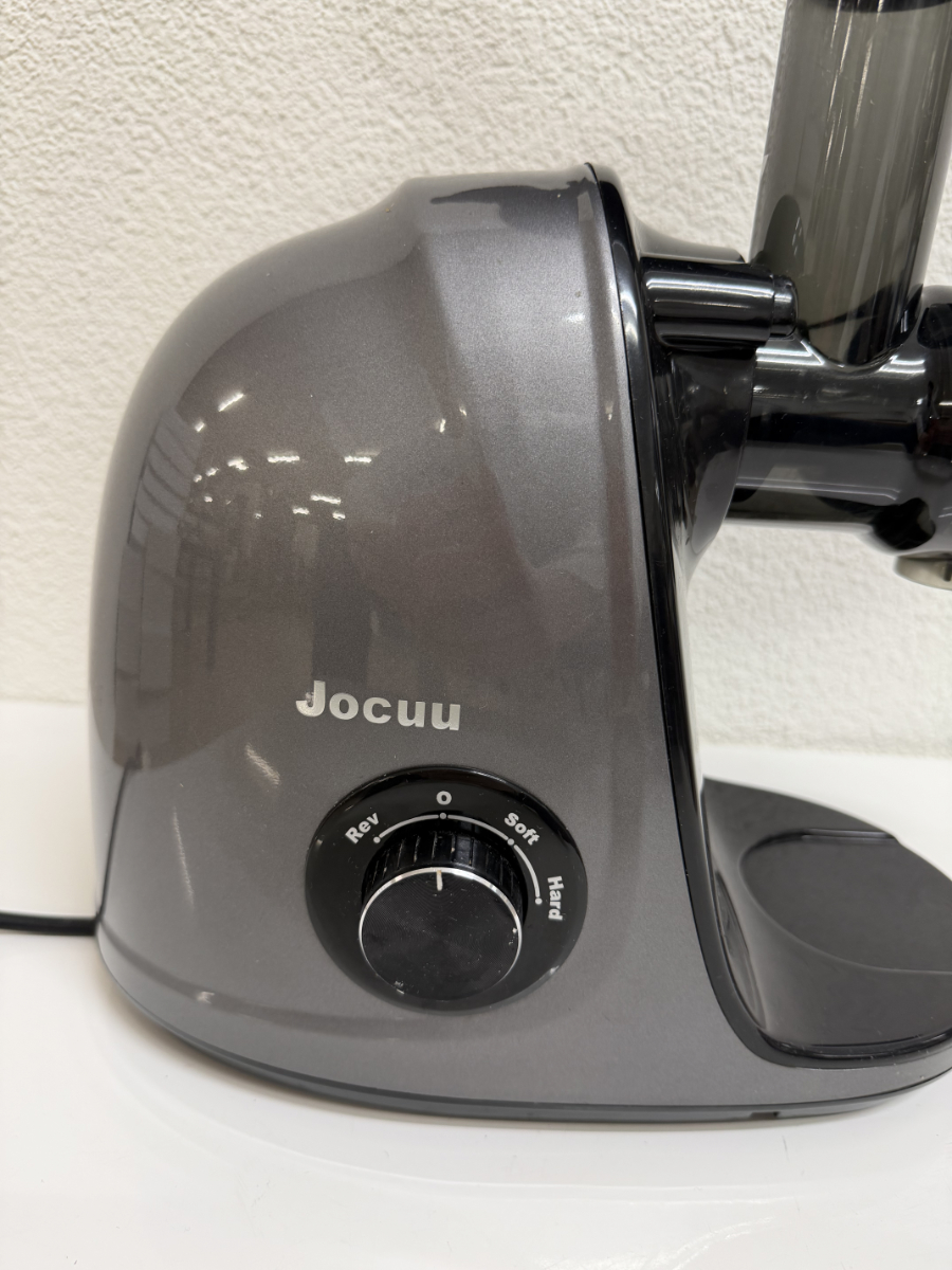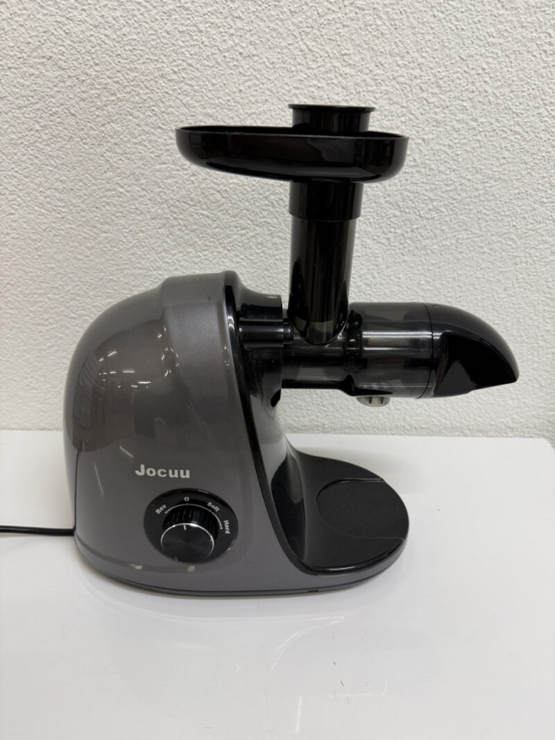 Grau-Schwarz, kompakt und schnell einsatzbereit. Dieser Jocuu Slow Juicer arbeitet mit Schneckenpressung und ist ideal für frische Säfte aus Obst und Gemüse. Der Drehregler vorne bietet Vorwärtslauf sowie Rücklauf zum Lösen, wenn sich mal etwas verklemmt. Alle Teile lassen sich zum Reinigen zerlegen, der Aufbau ist übersichtlich und alltagstauglich.