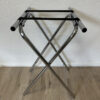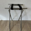 Klappbarer Kofferständer aus Chrom mit schwarzen Gurten
