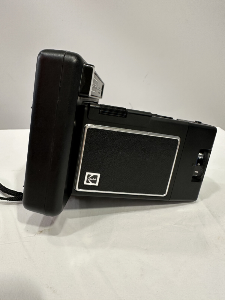 Die Kamera ist mit einem verstellbaren Objektiv ausgestattet, das präzise Schärfeeinstellungen zwischen 1,8 und 8 Metern erlaubt. Sie verwendet den Kodak PR-10 Instant Print Film und verfügt über ein Sichtfenster zur Filmkontrolle. Das kompakte Format und die mitgelieferte schwarze Tragetasche machen sie zum perfekten Sammlerstück für Liebhaber klassischer Analogtechnik.