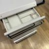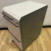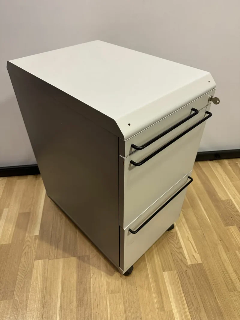 Der abschließbare Korpus/Rollcontainer befindet sich in einem guten bis sehr guten Zustand. Dieser wunderschöne Korpus ist in einem edlen Hellgrau gehalten und bietet ausreichend Stauraum. Dies zeigt sich in den beiden großen Schubladen unten sowie der kleineren Schublade oben, die sich ideal für Schreibutensilien oder kleinere Gegenstände eignet. Er ist äußerst praktisch, da er bei Bedarf einfach abgeschlossen werden kann. Darüber hinaus zeichnet er sich durch seine Robustheit aus und ist daher ideal für die Büroeinrichtung geeignet.