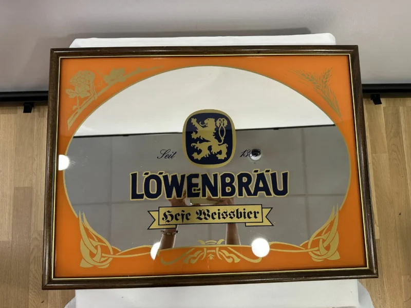 Löwenbräu Bier, Werbespiegel im braunen Echtholzrahmen «Hefe Weissbier»