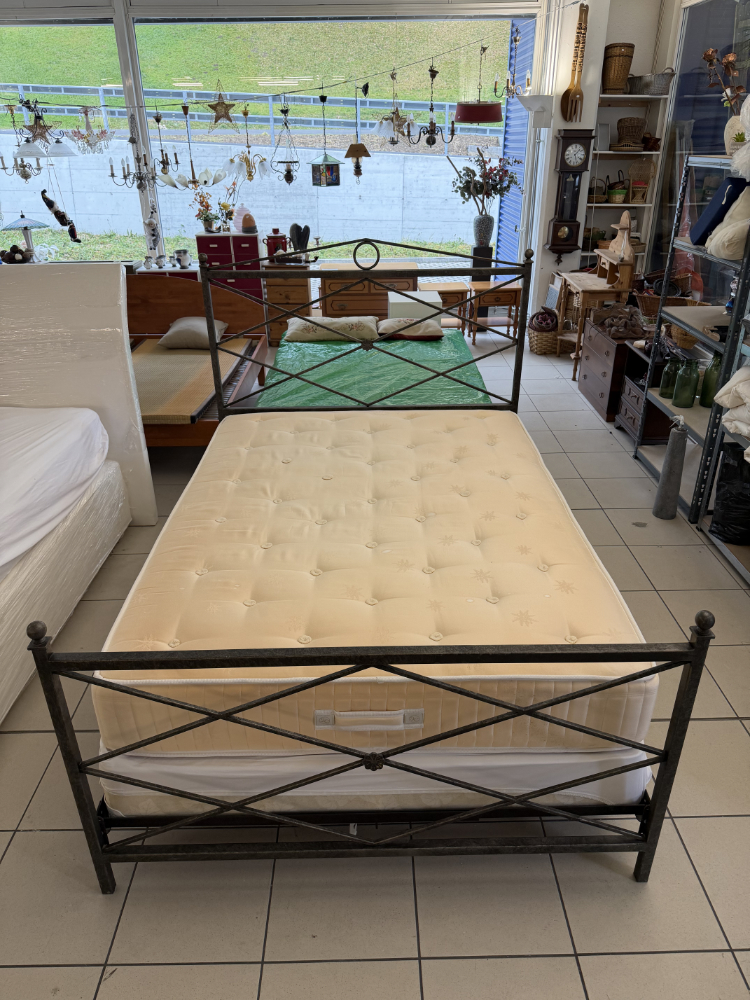 Klare Linien, stabile Konstruktion und bewährte Schweizer Schlafqualität. Dieses Bett kombiniert ein robustes Metallbettgestell mit dekorativem Kreuzstreben-Design und einer hochwertigen Elite Matratze aus Schweizer Manufaktur. Die Konstruktion wirkt leicht, bietet aber gleichzeitig eine sehr stabile Basis für erholsamen Schlaf.