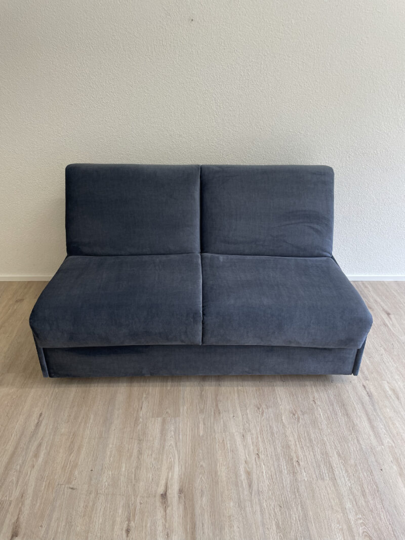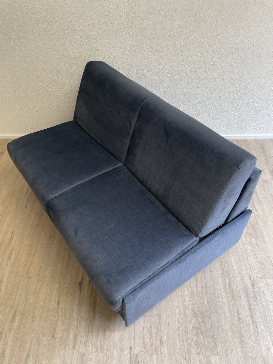 Der dunkelblaue Stoffbezug ist robust und sieht in modernen Wohnungen sehr ruhig und hochwertig aus. Dazu kommt der grosse Pluspunkt beim Preis: Der Neupreis lag damals bei CHF 3509.–.