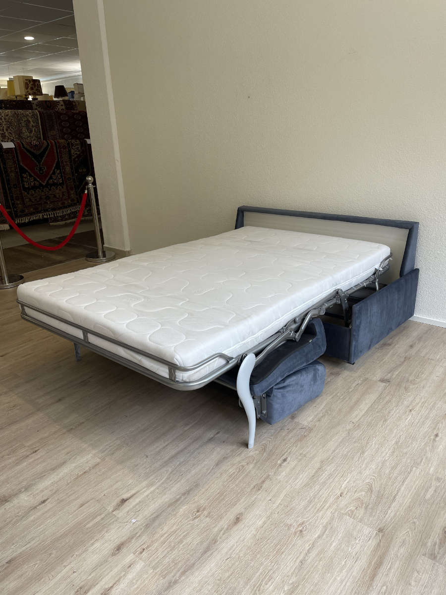 1.5 Jahr jung und entsprechend gepflegt: Dieses Schlafsofa von Bali Funktionsmöbel wirkt frisch, sitzt sich bequem und lässt sich mit wenigen Handgriffen in ein richtiges Bett verwandeln. Die Umwandlung läuft über ein stabiles Metallgestell mit ausklappbaren Füssen, die Liegefläche wird eben und ist ideal für Gäste oder als praktische Alltagslösung.