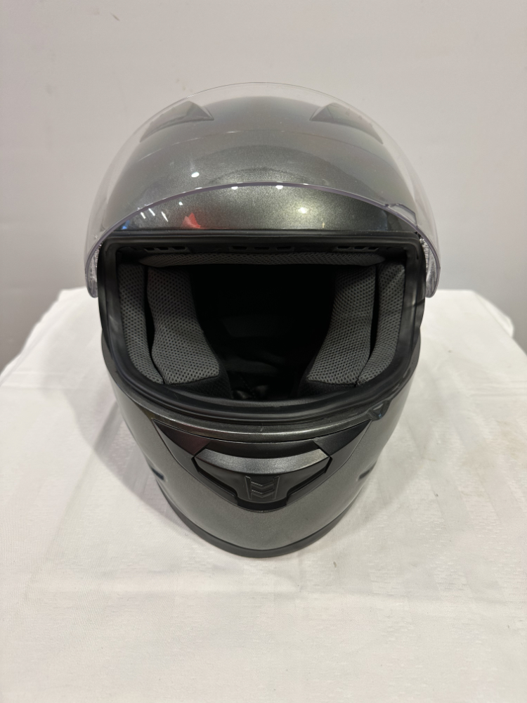 Motorradhelm Grau S (55–56 cm) – Vollvisier mit Belüftung und Klarsichtvisier