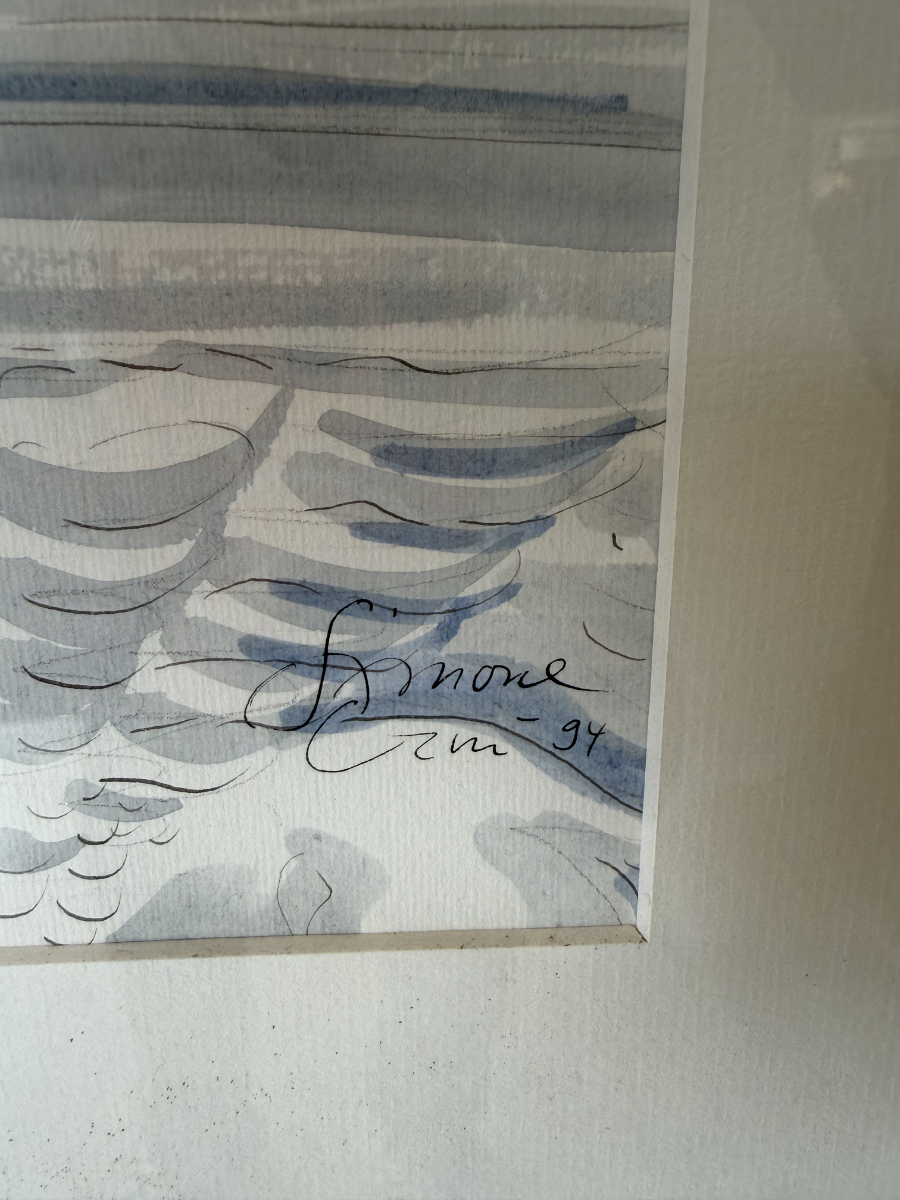 Simone Erni ist Tochter des bekannten Schweizer Künstlers Hans Erni und hat sich mit eigenen Werken in der Kunstszene etabliert. Die Zeichnung ist unten rechts signiert und in der ursprünglichen Datierung erhalten.