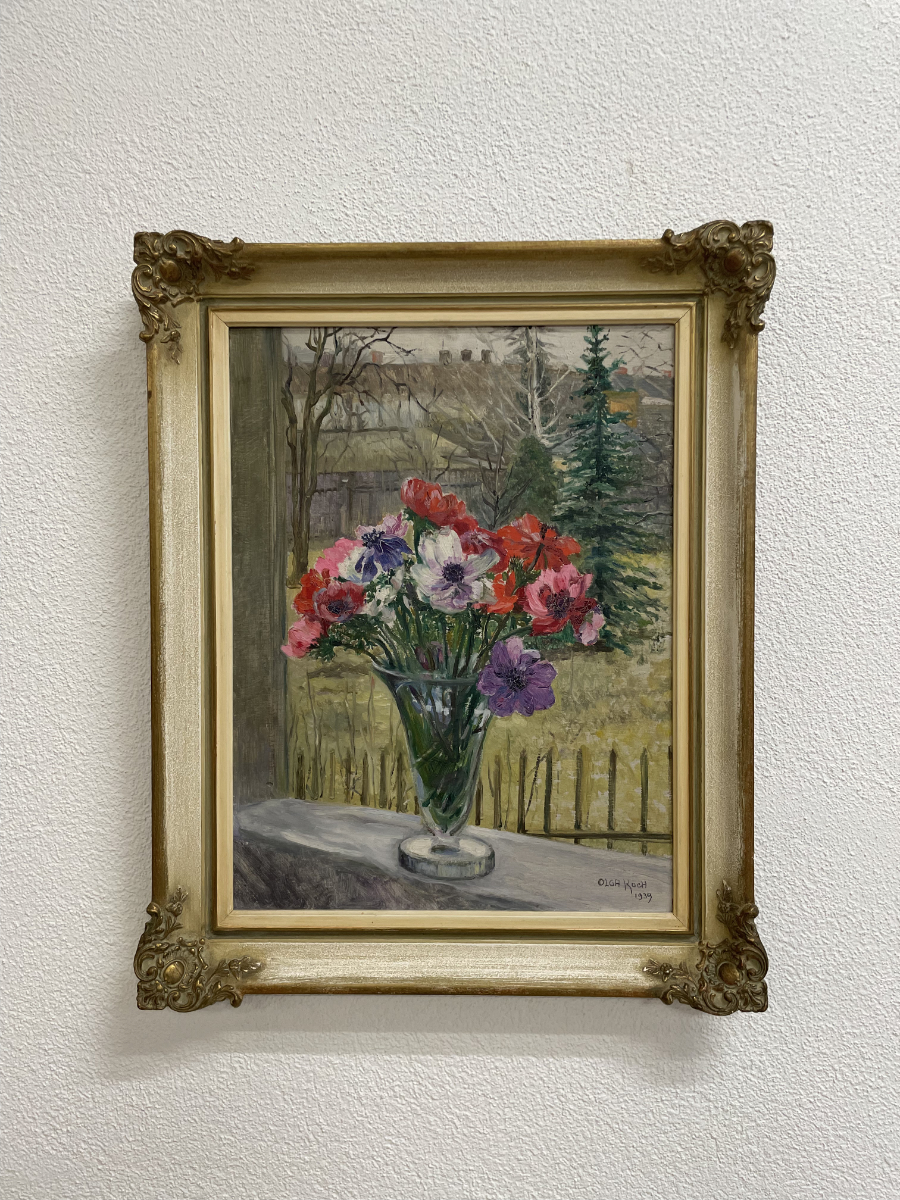 Ölbild von Olga Koch (1939) Blumenstillleben im Goldrahmen