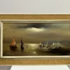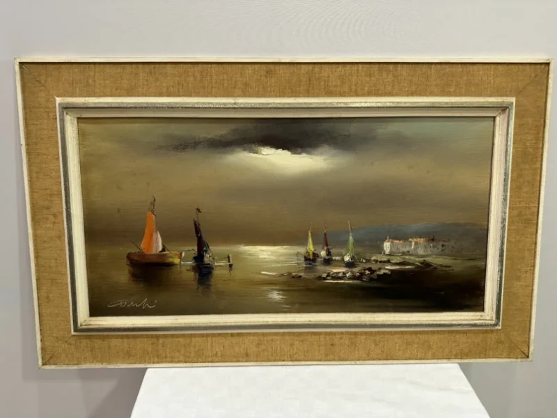 Ölgemälde mit Schiffen im Mondschein
