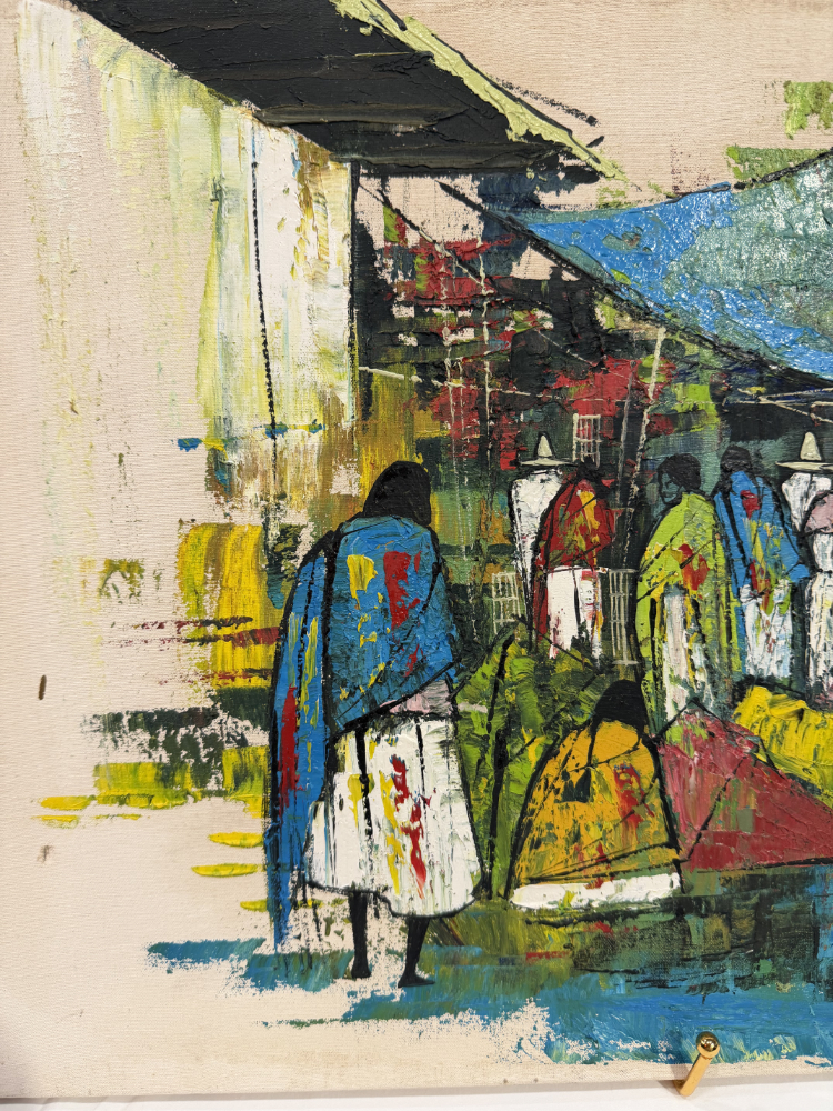 Ölgemälde von Benigno Gomez um 1970 – „Mexikanische Marktszene“ 54 x 34 cm
