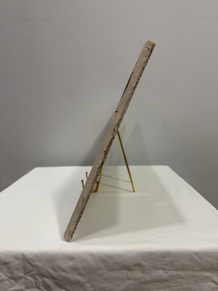 Das Gemälde ist auf Leinwand gemalt, auf Keilrahmen gespannt und befindet sich in sehr gutem Zustand.