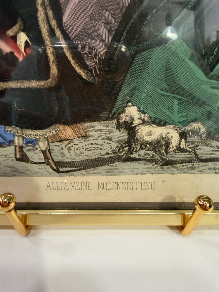 Original Mode-Lithografie „Allgemeine Modenzeitung“ von 1864 – kolorierter Kupferstich im Goldrahmen 30 x 24 cm
