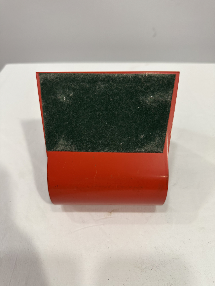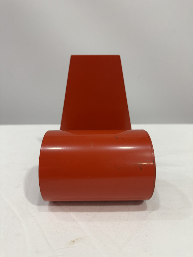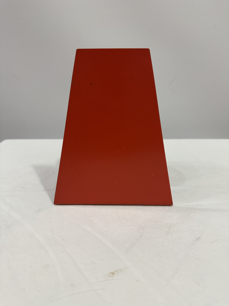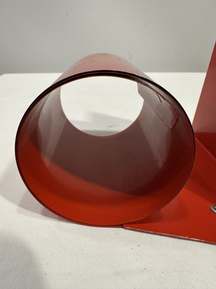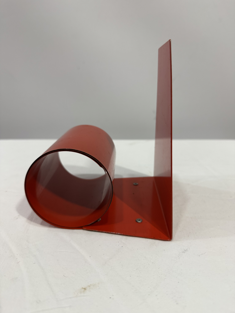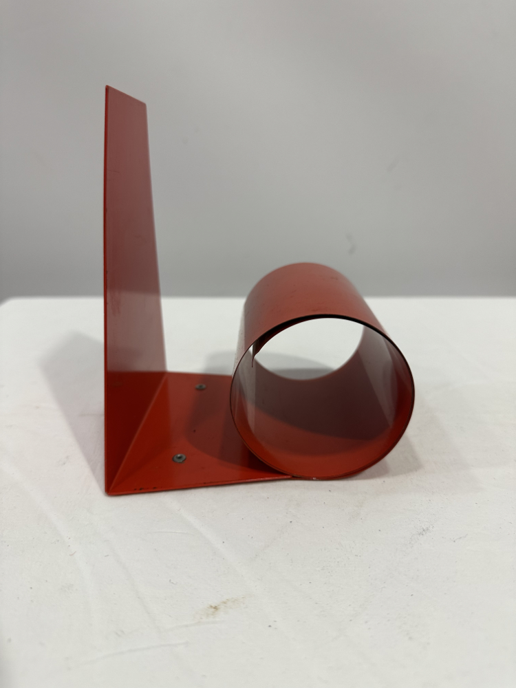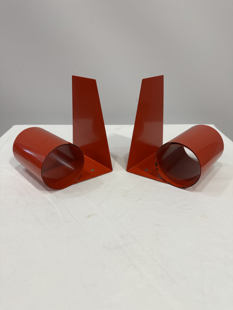 Diese formschönen Buchstützen stammen aus den 1970er Jahren und zeigen eindrucksvoll, wie minimalistisch und zugleich ausdrucksstark das Space-Age-Design dieser Zeit war. Die zylindrischen Formen aus lackiertem Metall in kräftigem Rot verleihen jedem Regal oder Schreibtisch einen Hauch Retro Charme.