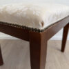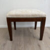 Cremefarbener Sitzbezug mit eingewebtem Blumenmuster und rundum mit Ziernägeln eingefasst: Dieser Hocker passt super zu Schlafzimmer, Ankleide oder als kleine Sitzgelegenheit im Flur. Das Holzgestell in warmem Braun wirkt schlicht und stabil, die gerade Form macht ihn leicht kombinierbar. Auch als Fussablage oder als Ablage neben dem Sessel praktisch.