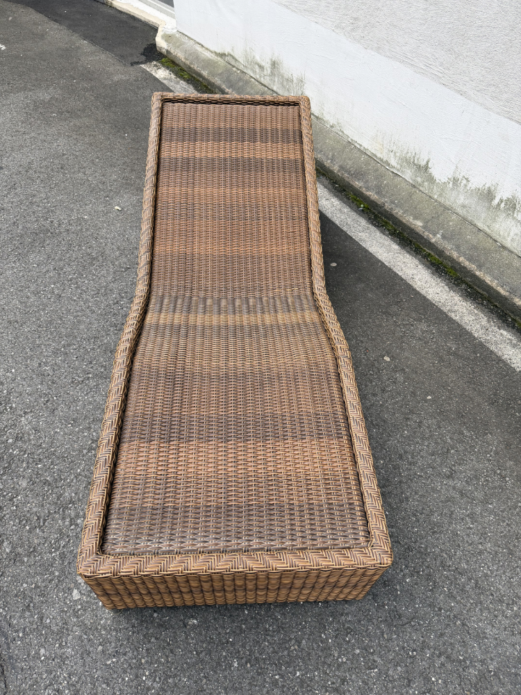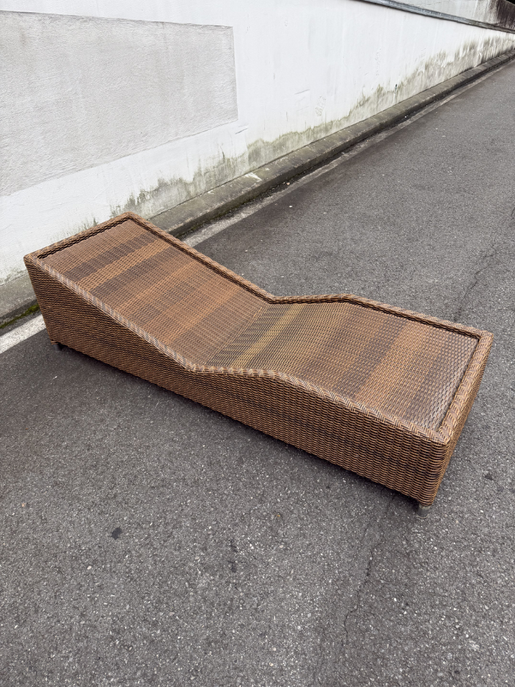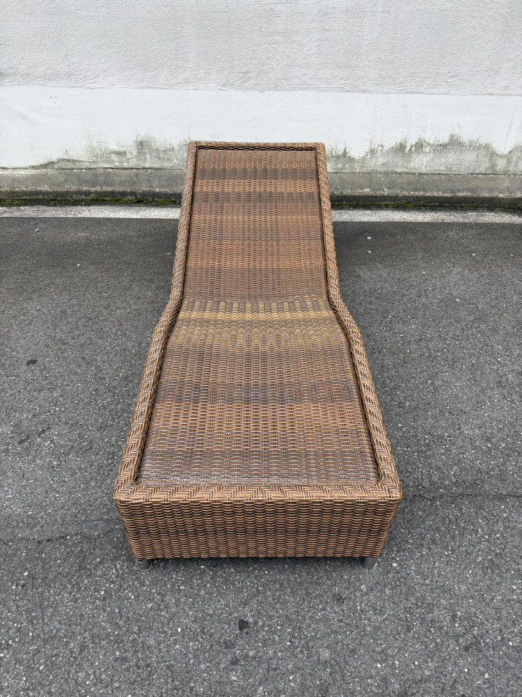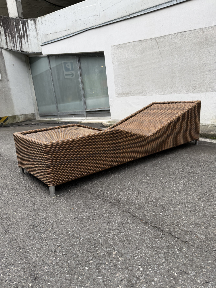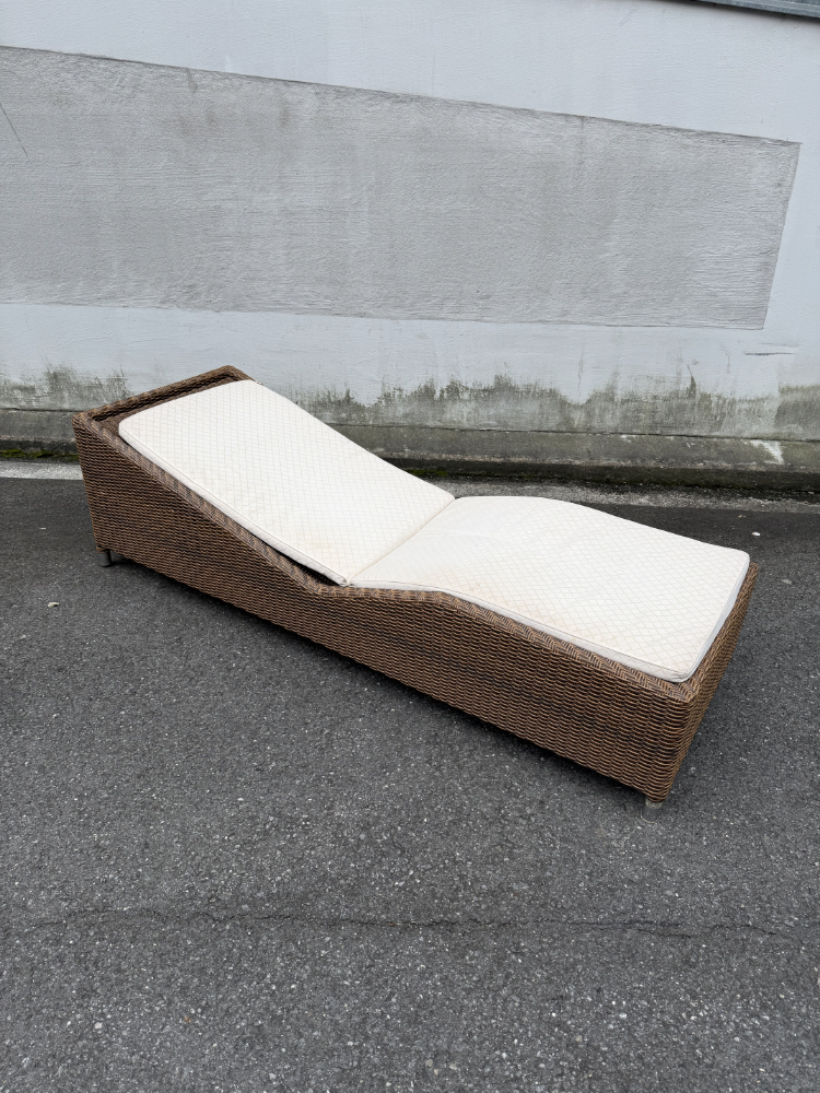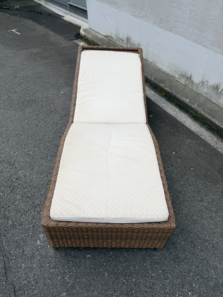 Rattan Gartenliege von Möbel Pfister mit cremefarbenem Polster
