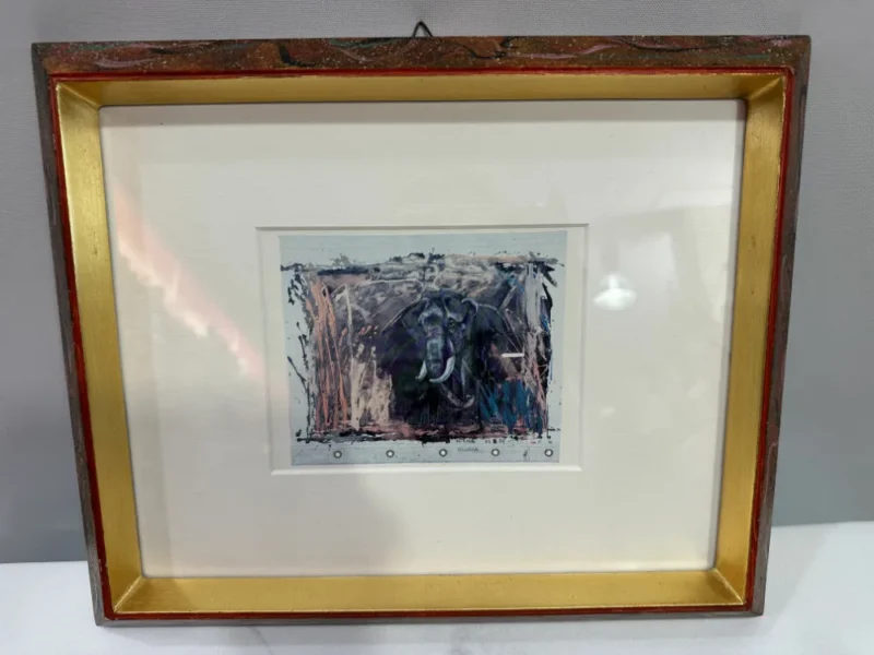 Rolf Knie Elefanten Bild Mehrfarbige Wiedergabe nach dem Original ,, Out of the jungel,, befindet sich in einem guten bis sehr guten Zustand. Dieses Bild auch genannt , Out of the Jungel. Hier es handelt sich um Mehrfarbige Wiedergabe nach dem Original von Rolf Knie. Es ist ein wunderschönes Bild was überall in einer Wohnung eine schöne Erscheinung von sich gibt.