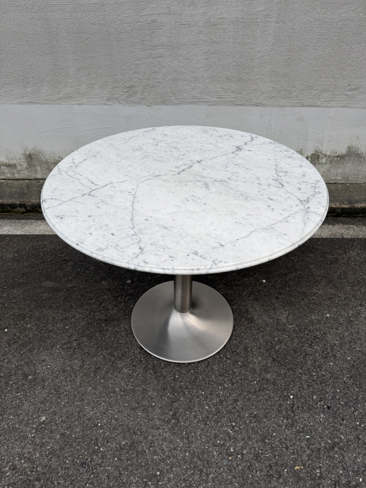 Runder Marmortisch mit Edelstahlfuss, Durchmesser 90 cm