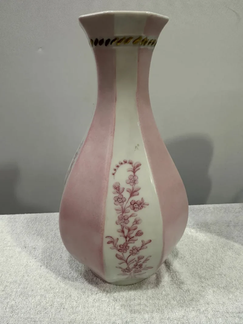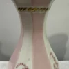 Schirnding Bavaria Vase in rosa/ weiss befindet sich in einem guten bis sehr guten Zustand. Diese schöne Vase hat eine tolle Optik, die mit einem rosa, weissen Streifen Muster versehen ist. Jeweils auf den weissen Teilen befindet sich ein rosa Blumen Muster, was durch den weissen Hintergrund schön zum Vorschein kommt. Diese Vase stammt von Bavaria Stücke von dieser Marke sind sehr beliebt, da der Bestand ziemlich gerring ist, gibt es nicht unbedingt Stücke, die sich größerer Beliebtheit erfreuen und deswegen mehr wert sind.