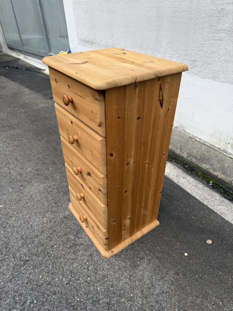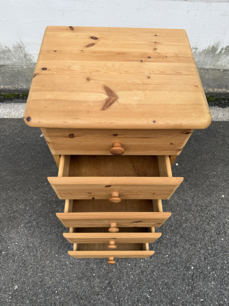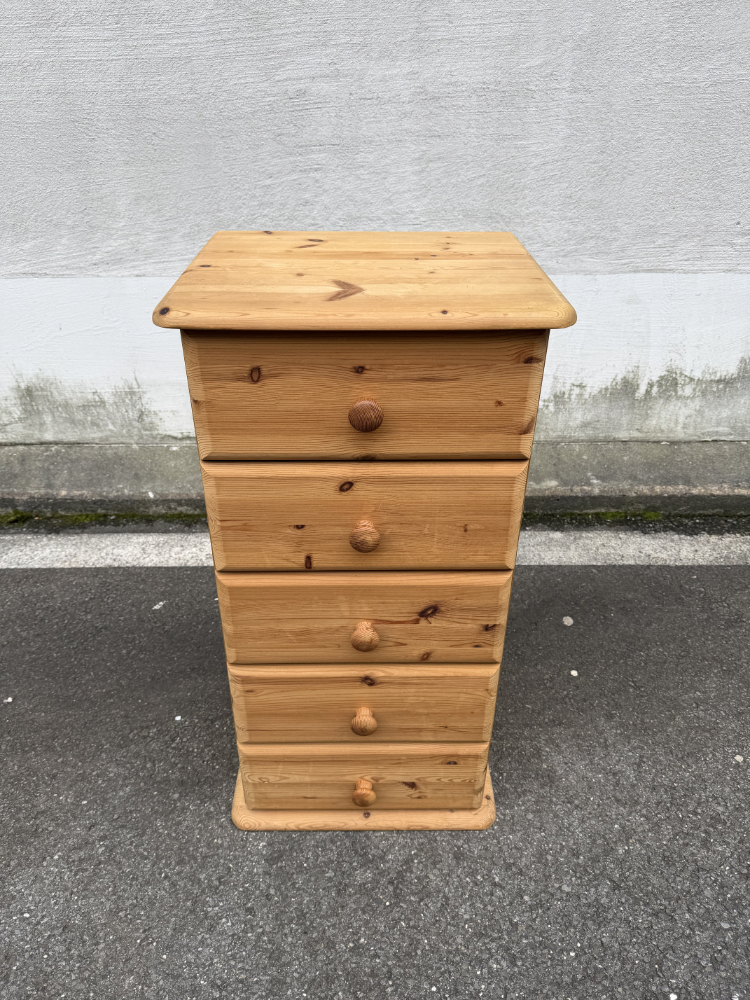 Schmale Kommode aus Kiefernholz mit 5 Schubladen