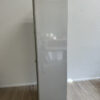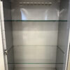 Schmaler Metall Vitrinenschrank mit Glastür und Unterfach in Hellgrau