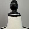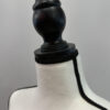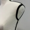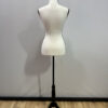 Diese Schneiderpuppe kombiniert klassische Optik mit praktischer Funktionalität. Der Torso ist mit hellem Stoff bezogen und durch schwarze Zierkanten elegant eingefasst. Auf dem dunklen Holzfuss mit gedrechselter Stütze steht die Figur stabil, während die Höhe über eine Schraubfixierung individuell angepasst werden kann. Ideal für Schneiderei, Modedesign oder als dekoratives Element in Boutique und Schaufenster.