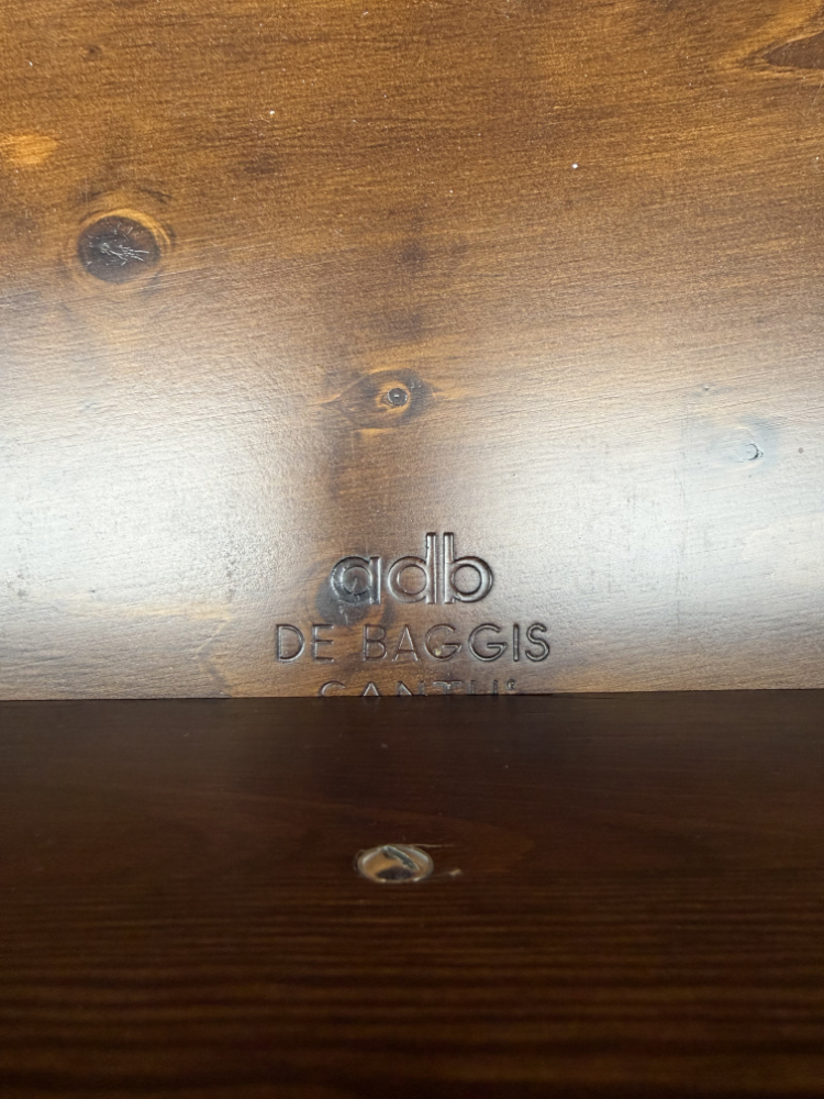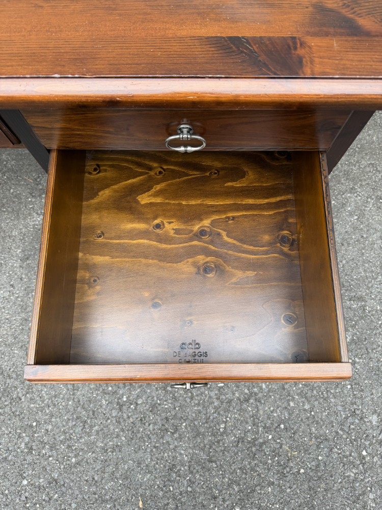 Klassischer italienischer Schreibtisch aus massiver Kiefer, gefertigt von adb De Baggis Cantù, einer renommierten Möbelmanufaktur aus Norditalien, bekannt für hochwertige Verarbeitung und traditionelles Handwerk. Der Tisch vereint solide Bauweise mit zeitloser Eleganz – klare Linien, feine Details und warmes Holz mit schöner Maserung.