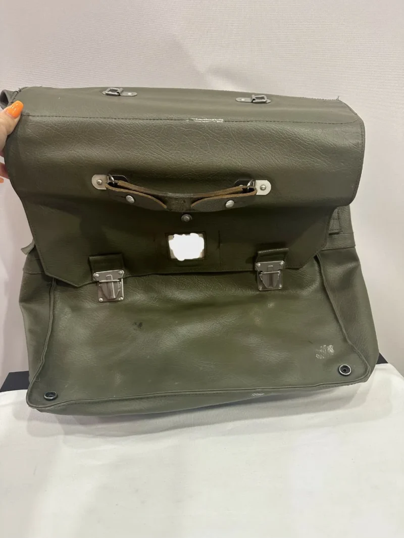 Schweizer Armee Tasche xs zu xl aus den 1960er Jahre befindet sich in einem guten Zustand. Sie weist an der äusseren Oberfläche wenige Gebrauchspuren. Diese Tasche wird auch als «F-Sack» bezeichnet, was so viel bedeutet wie «Effekten-Sack». Sie diente dem Transport persönlicher Gegenstände und Wäsche aller Militärmitglieder, meistens für den Weg zwischen Zuhause und der Armee. Die Tasche verfügt über drei Größeneinstellungen, um sowohl wenige als auch viele Dinge zu transportieren. Sie ist zudem äußerst robust und wasserdicht. Im Inneren bietet sie viel Stauraum. Man kann sie heute sowohl als normale Tasche verwenden als auch als Sammlerstück nutzen.