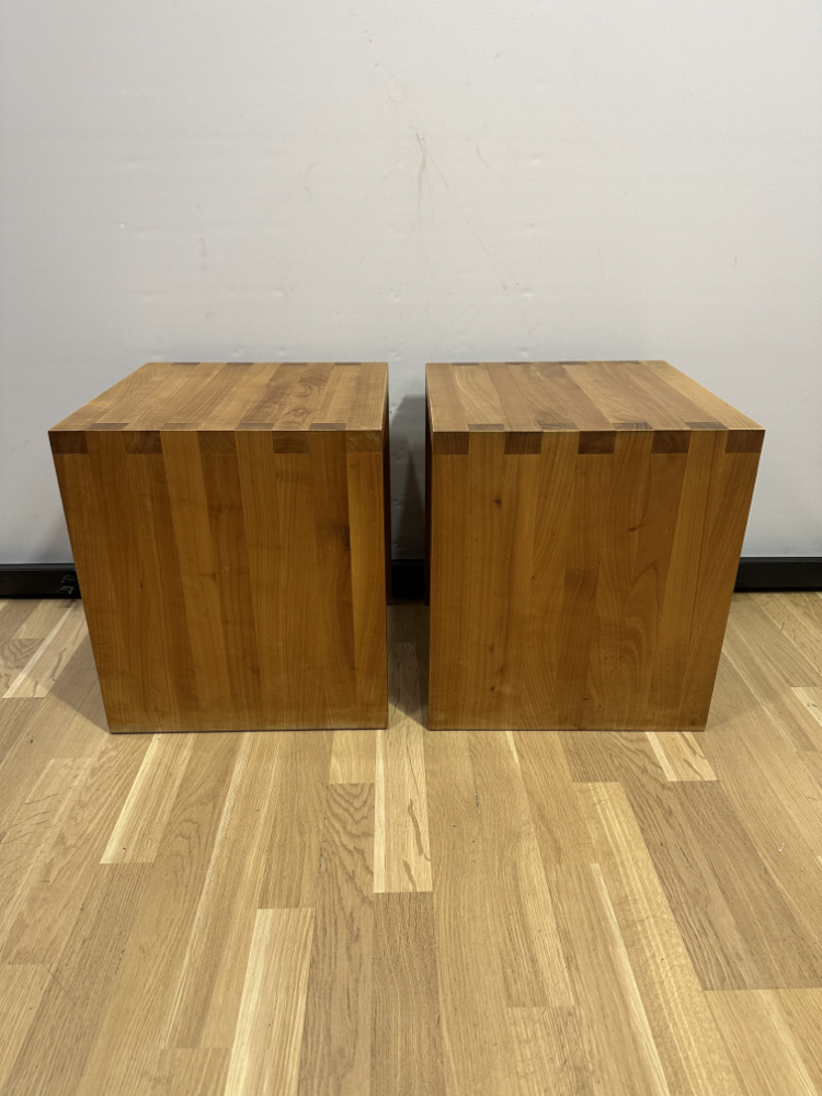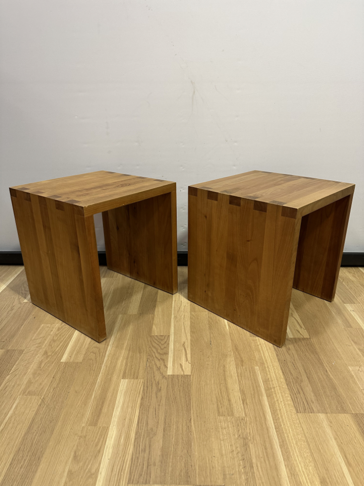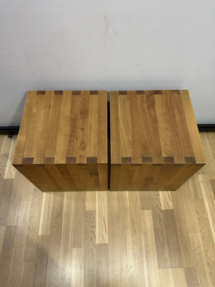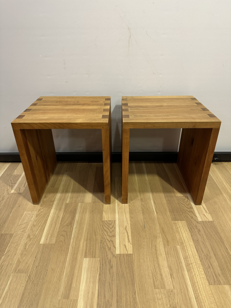 Dieses Set aus zwei massiven Nussbaum-Hockern verbindet klare Formensprache mit hochwertigem Handwerk. Die warme, charaktervolle Maserung des Nussbaumholzes und die sichtbare Fingerzinkung machen die Stücke zu zeitlosen Begleitern, die sowohl funktional als auch dekorativ überzeugen. Ob als Sitzgelegenheit, Beistelltisch oder stilvolles Wohnaccessoire – diese Hocker sind vielseitig einsetzbar.